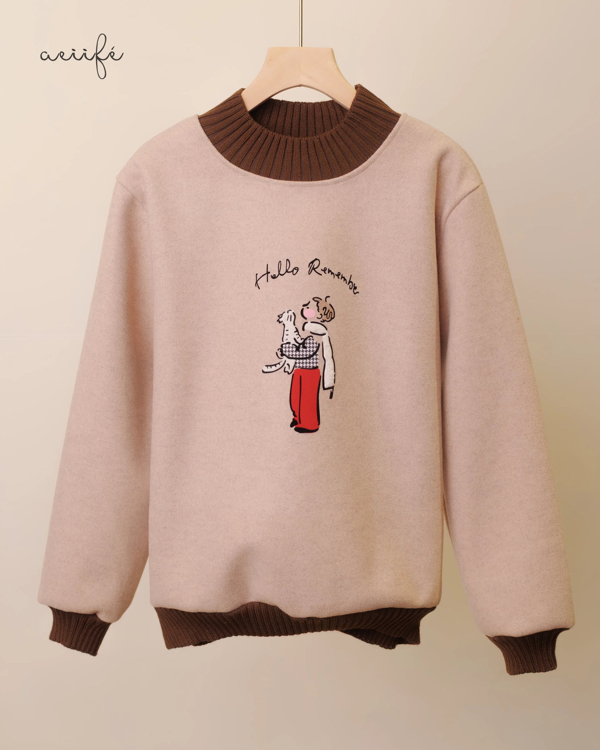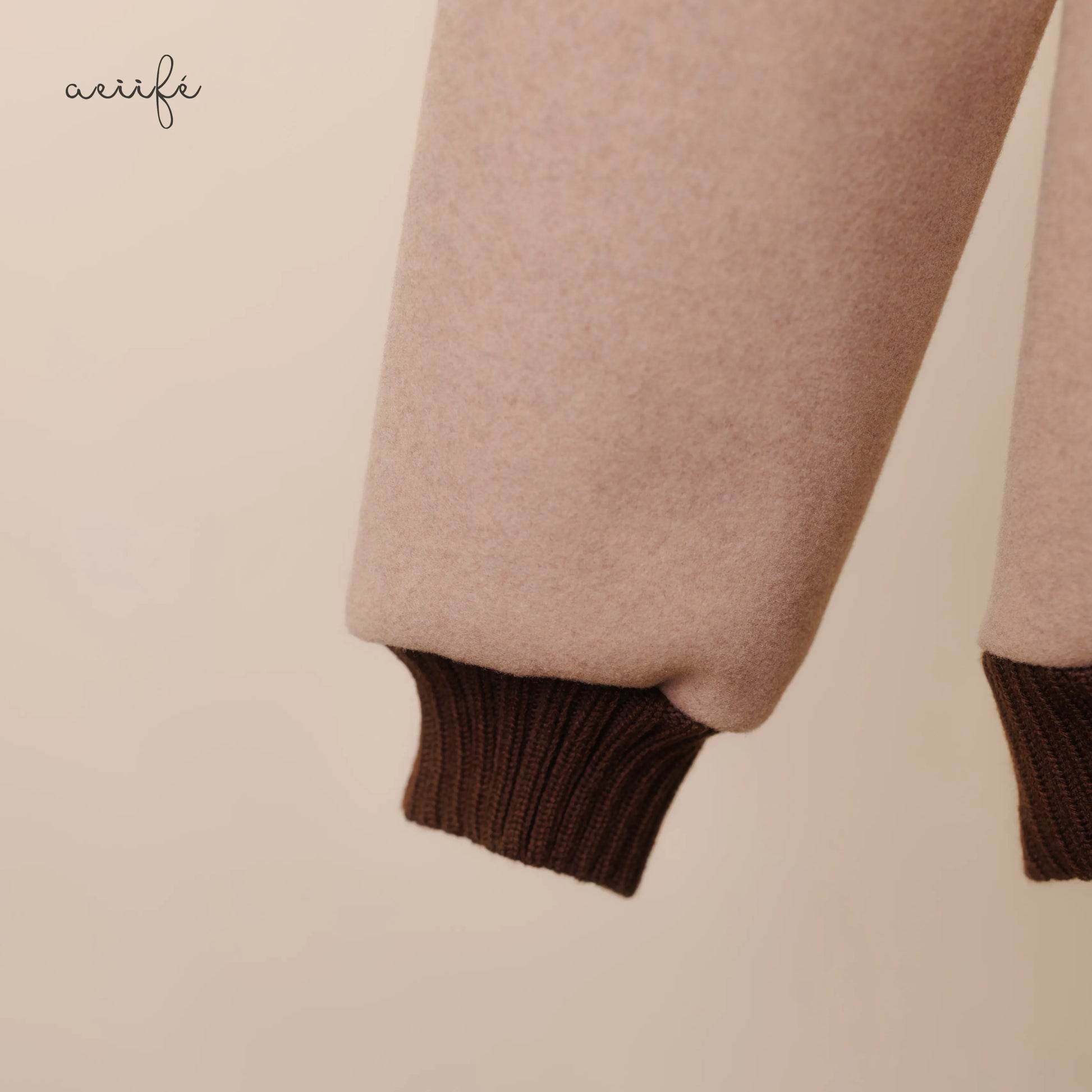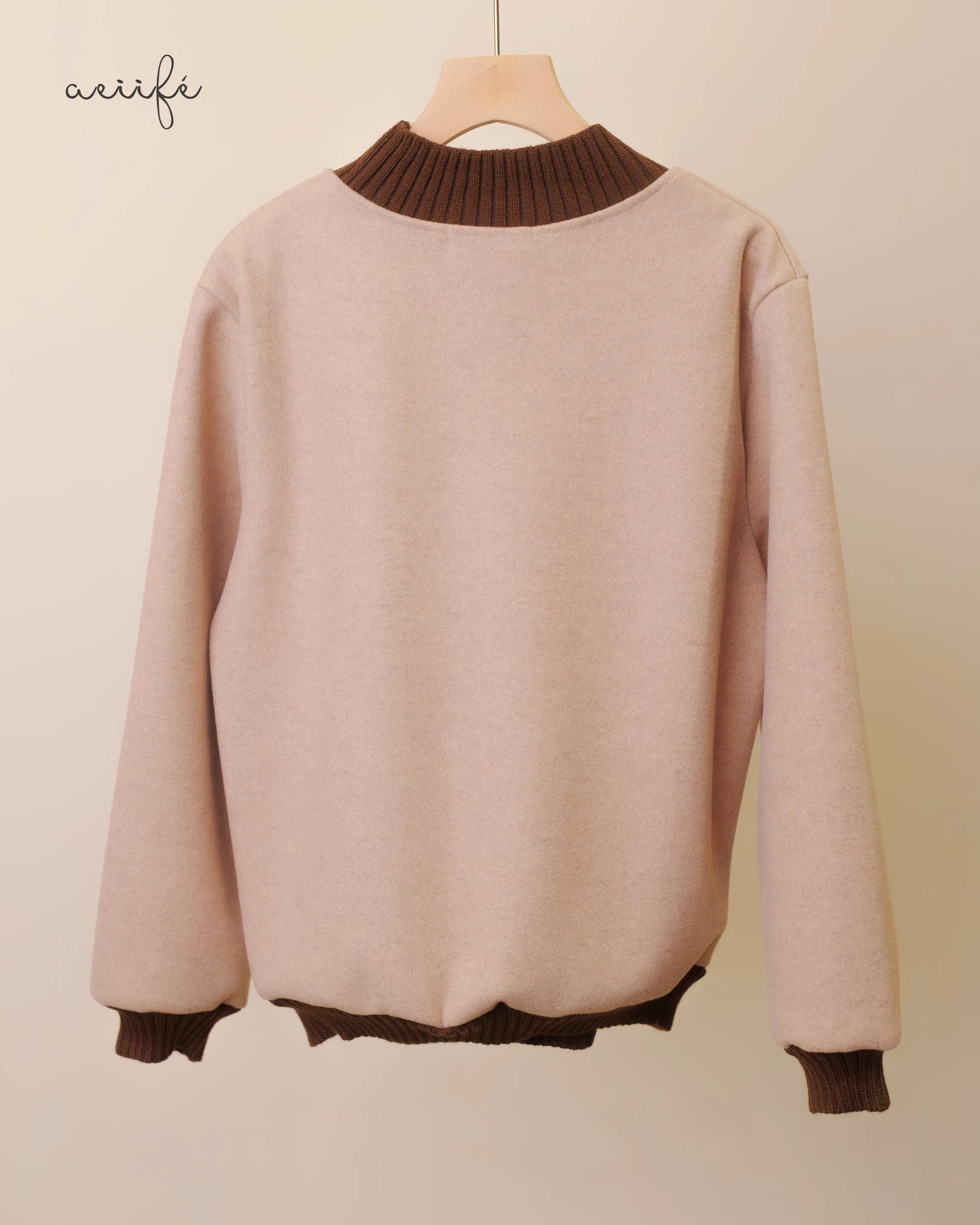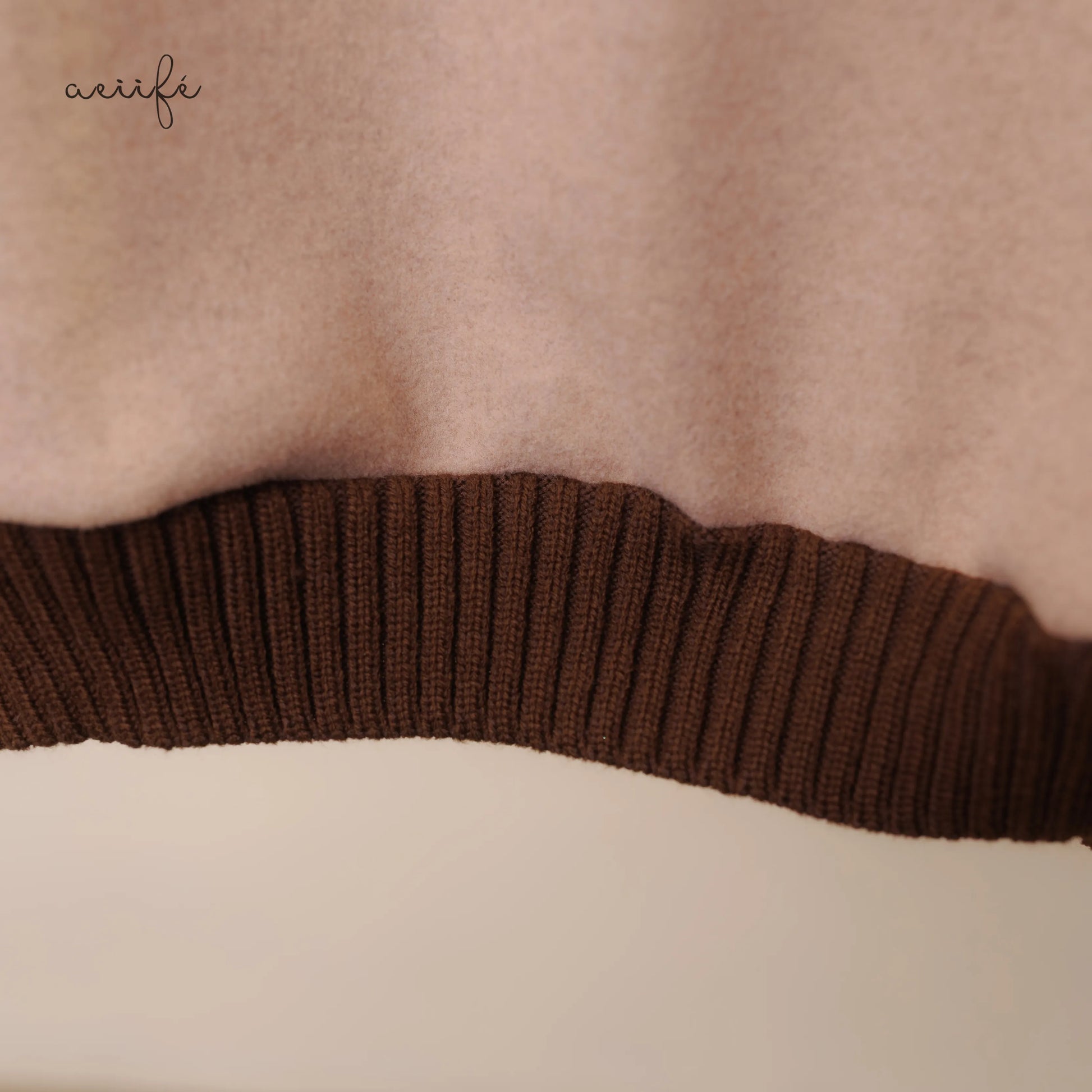 領口、袖口與下擺都用上了深啡色的粗針織羅紋邊