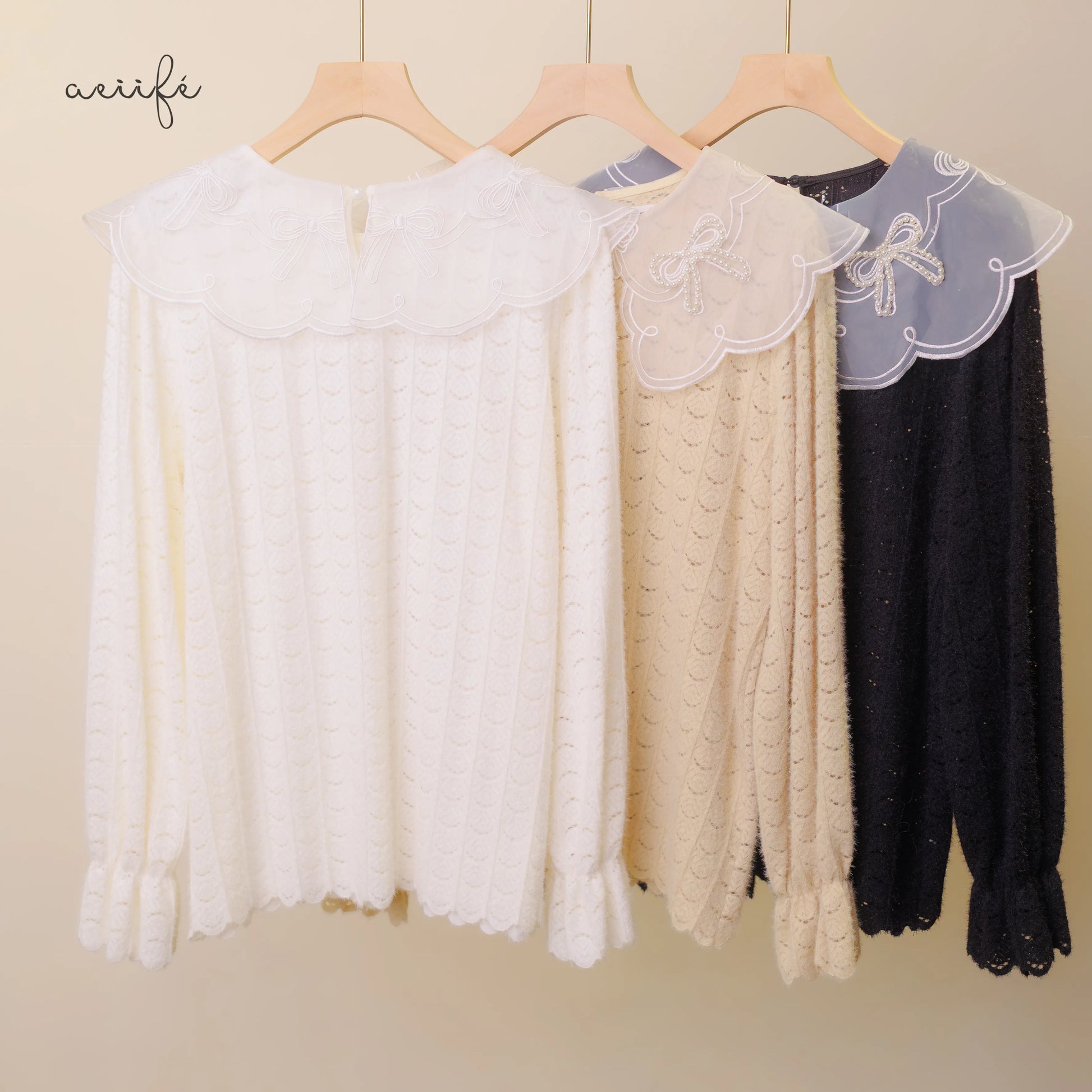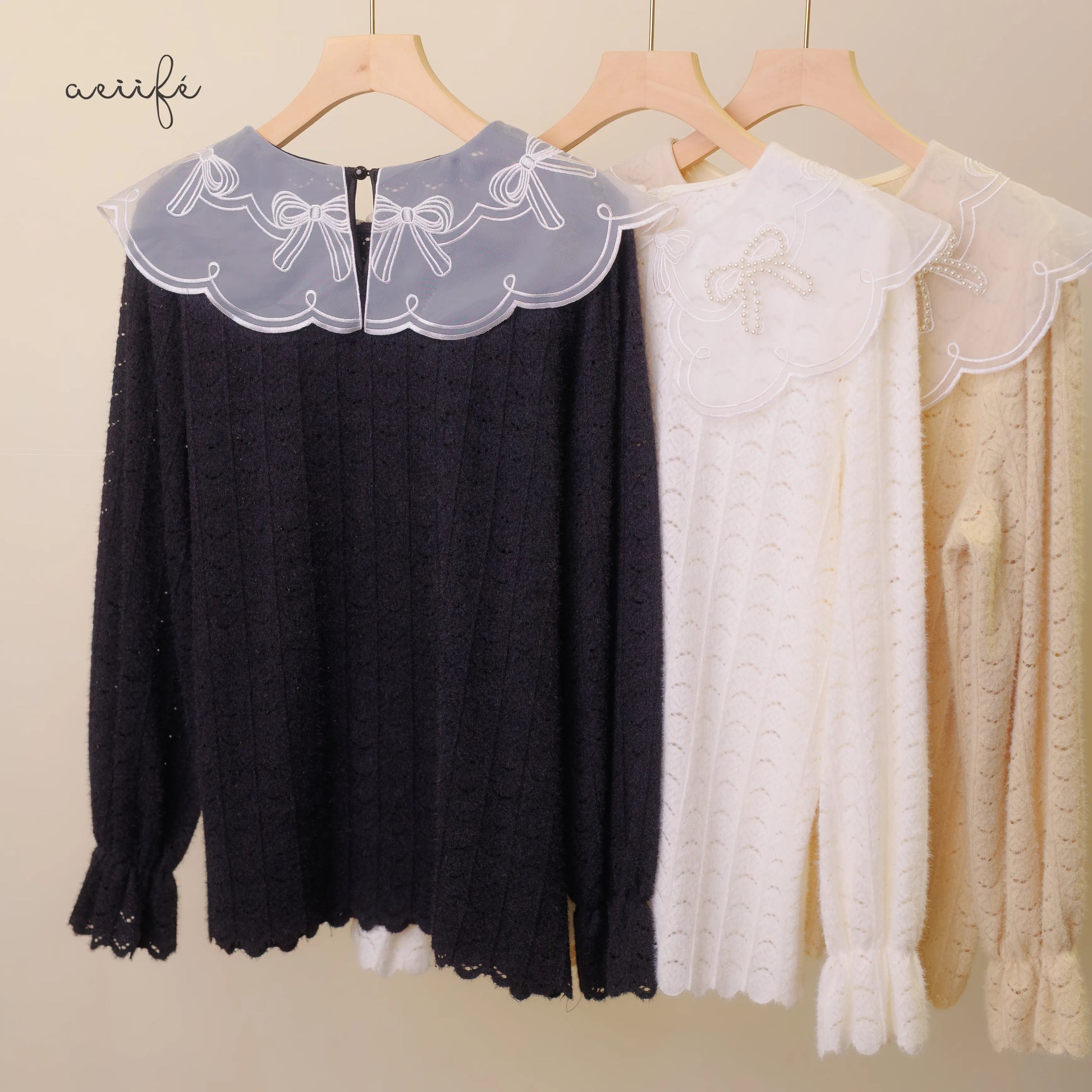 是領口的刺繡和蝴蝶結釘珠領
