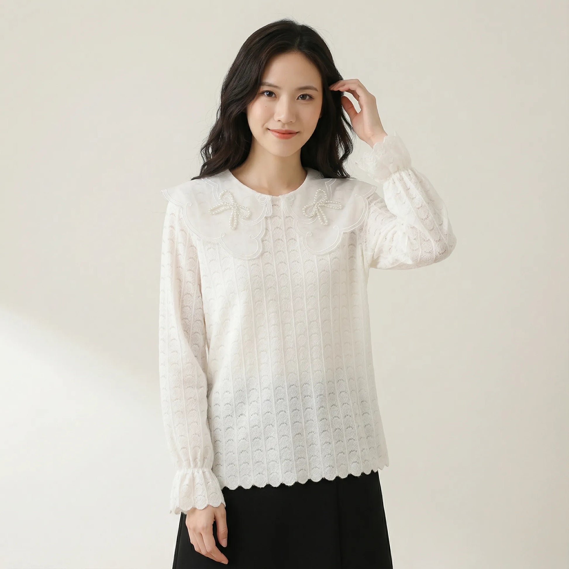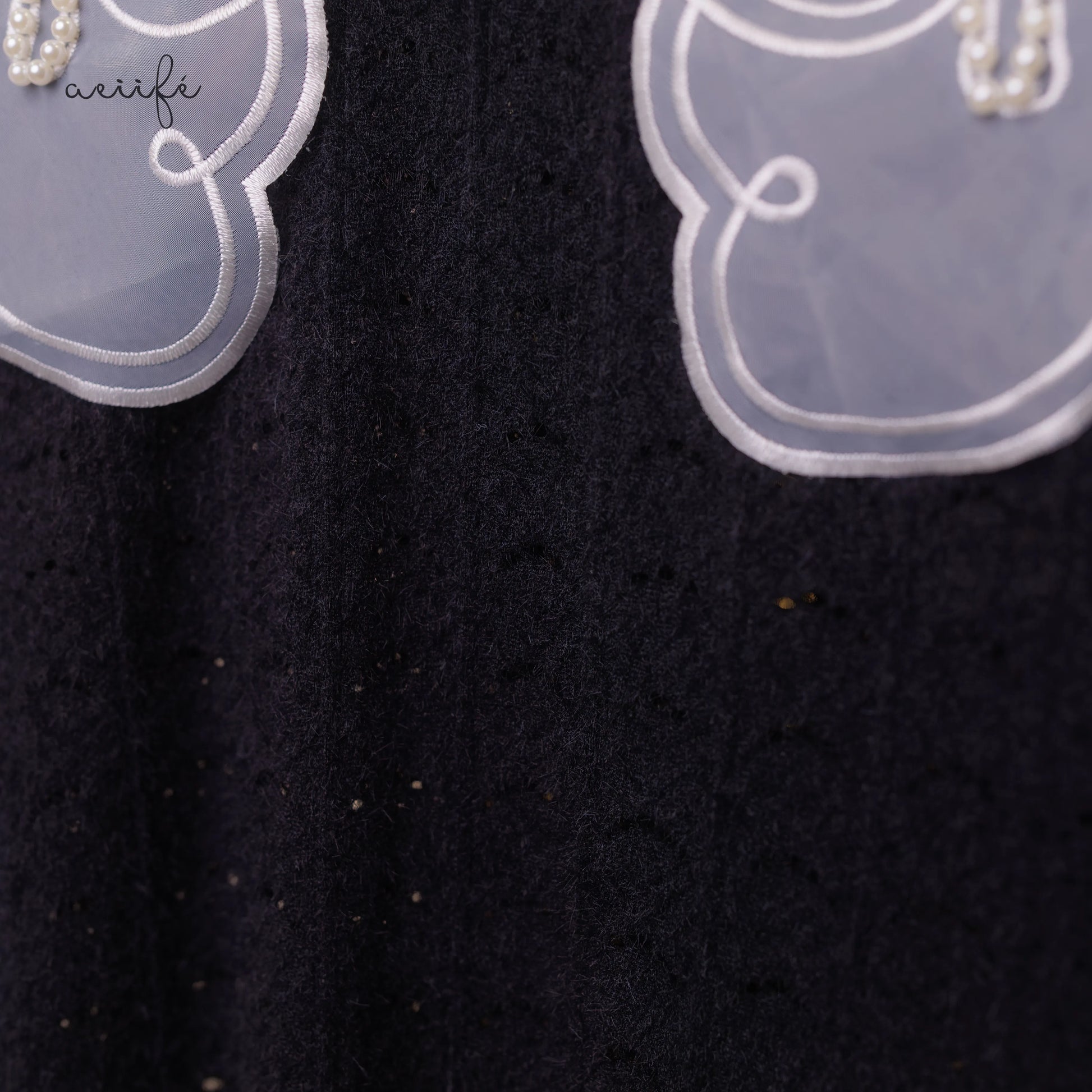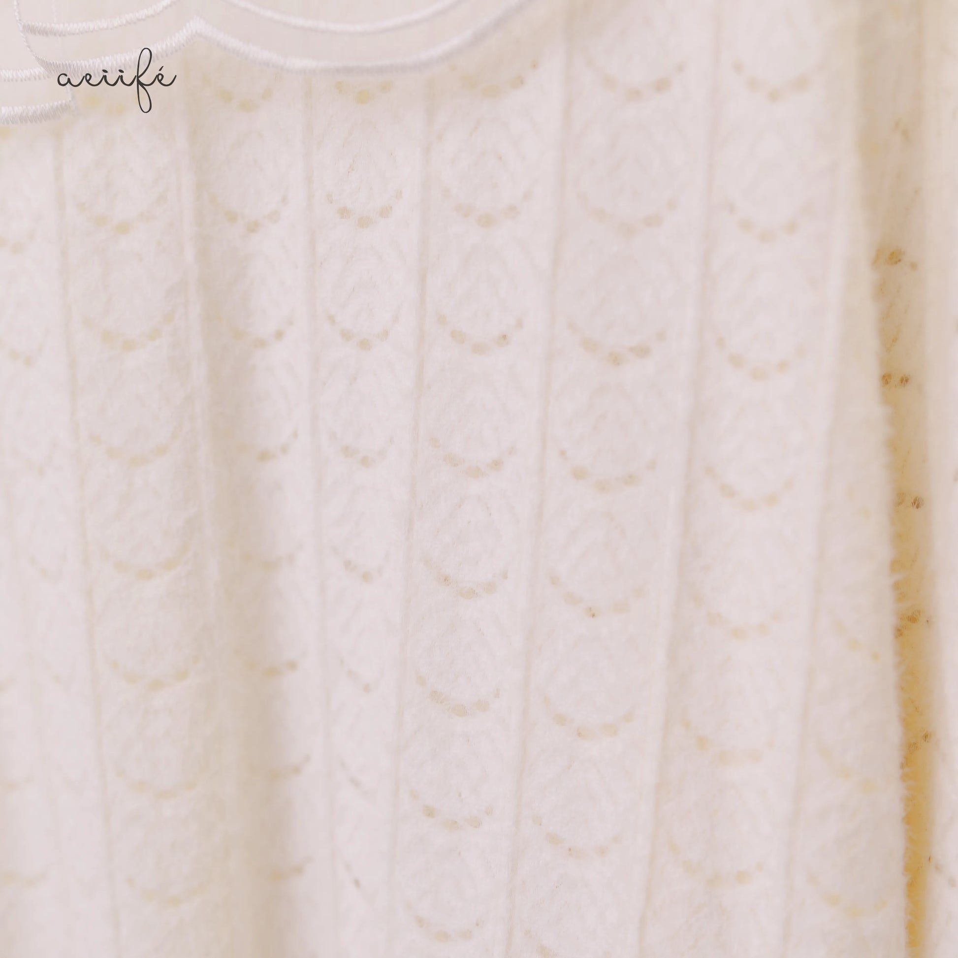 半透白的刺繡、珍珠溫婉細膩的光澤