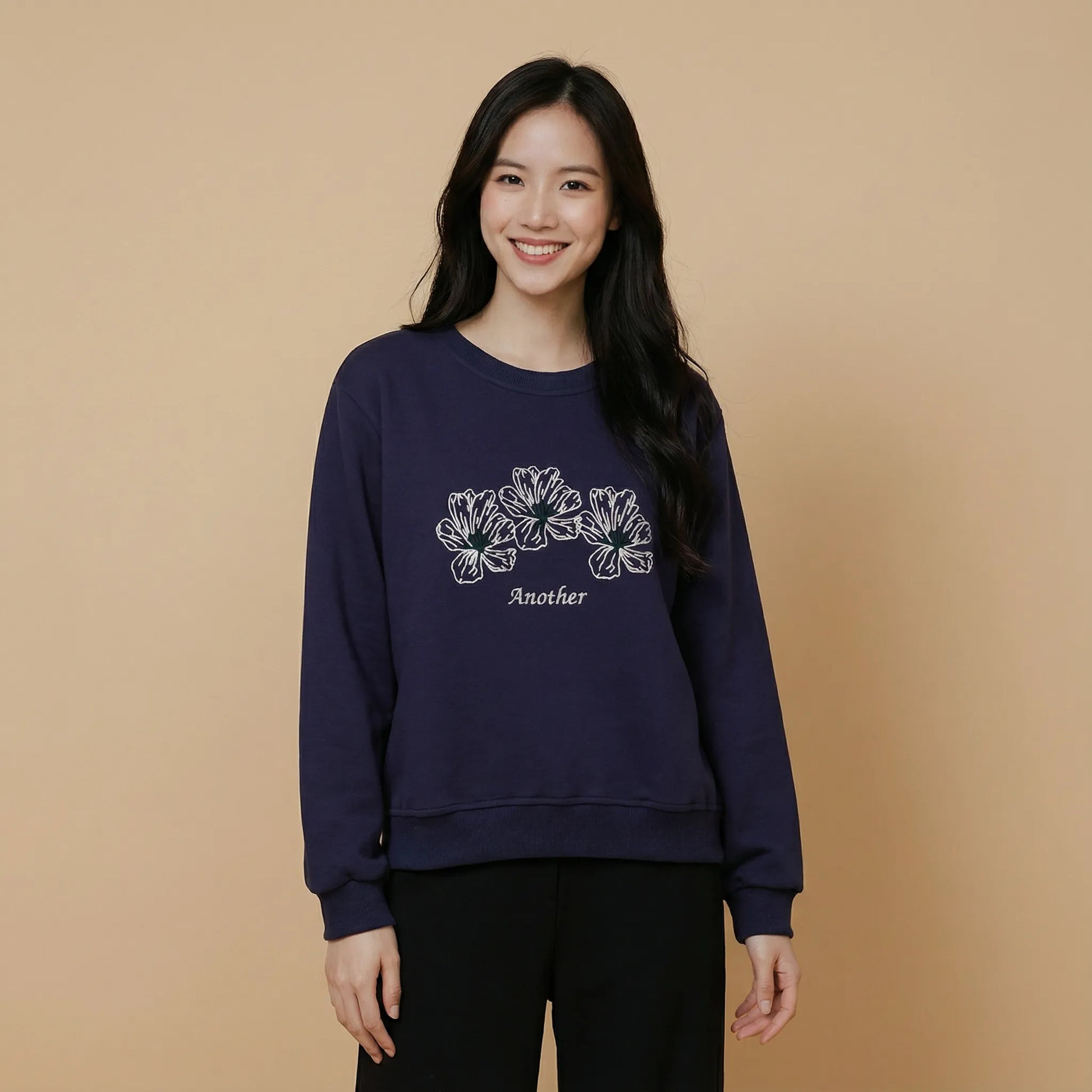 植絨花朵圖案棉質衛衣