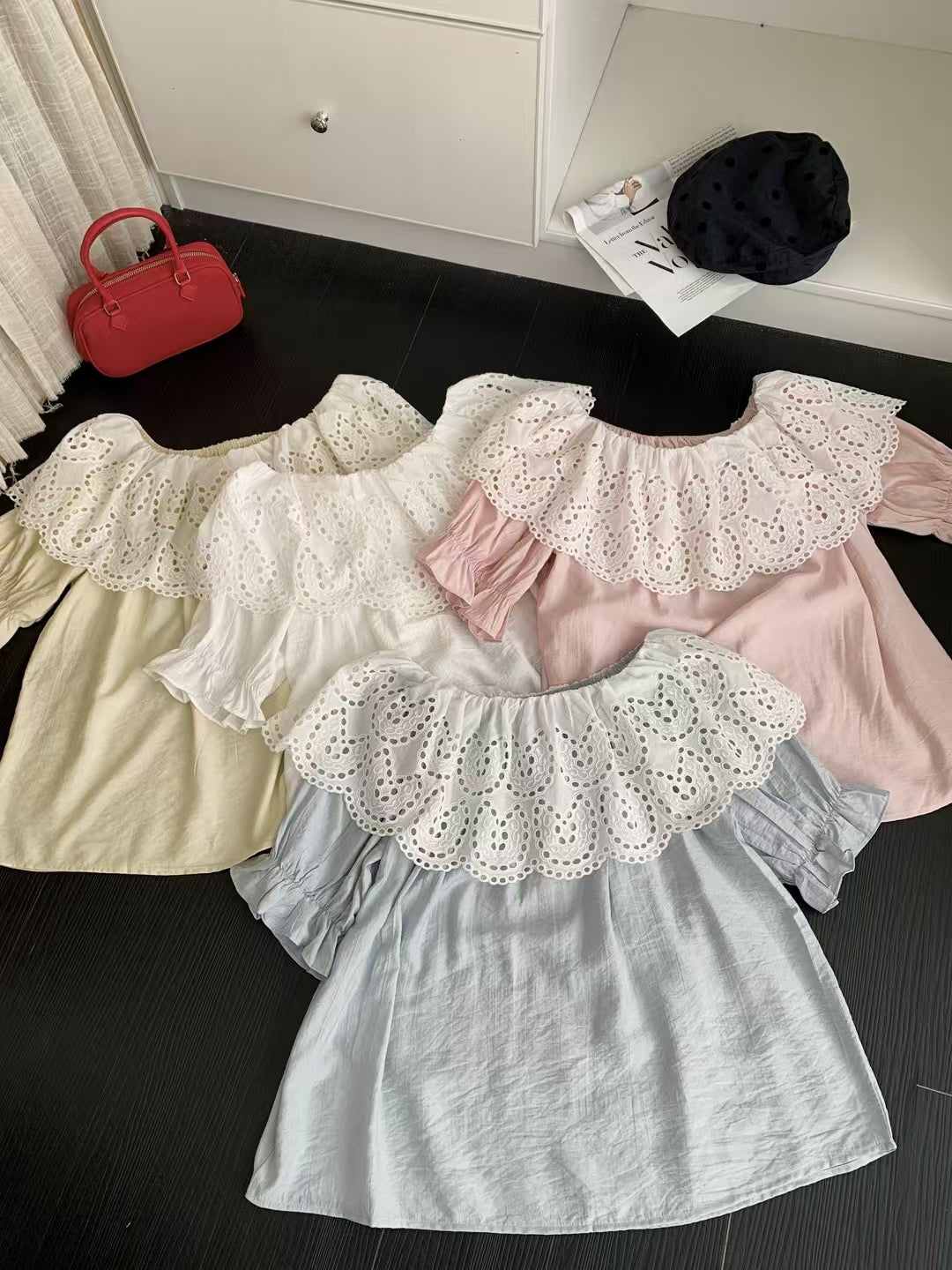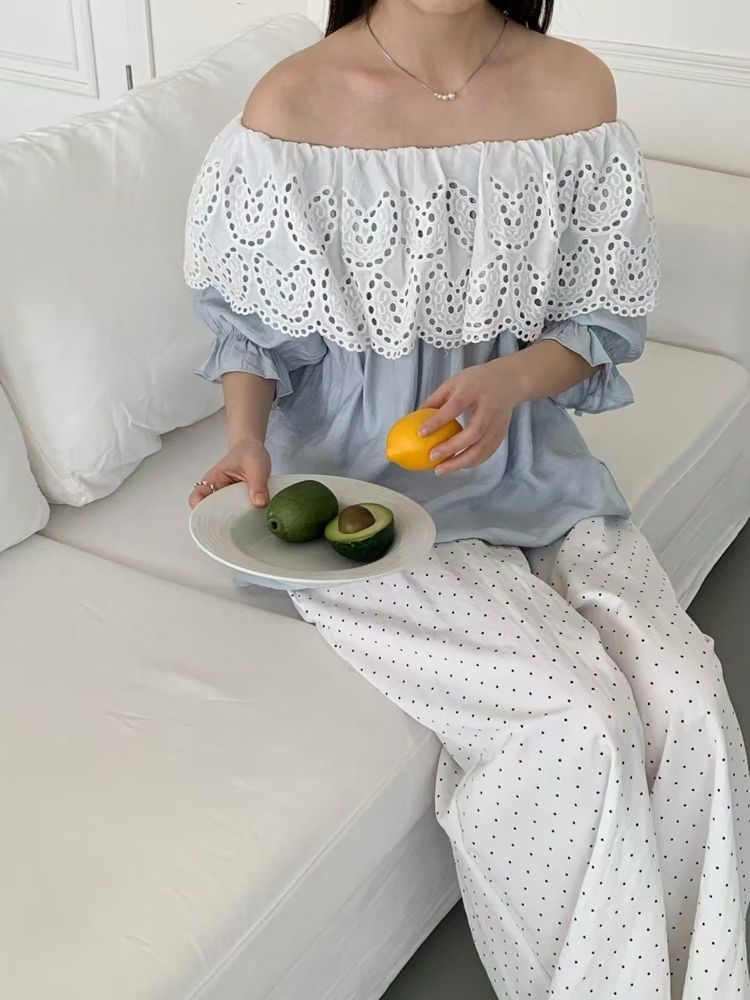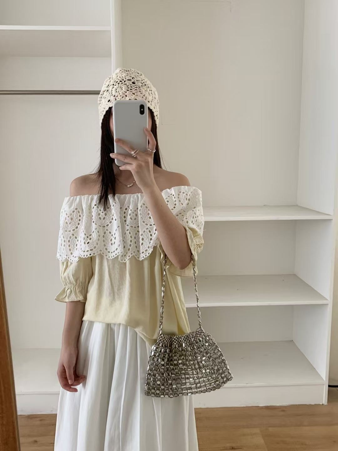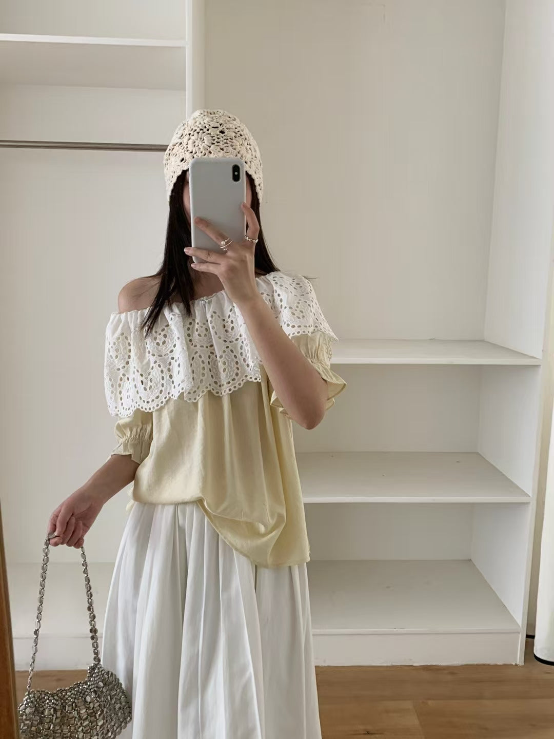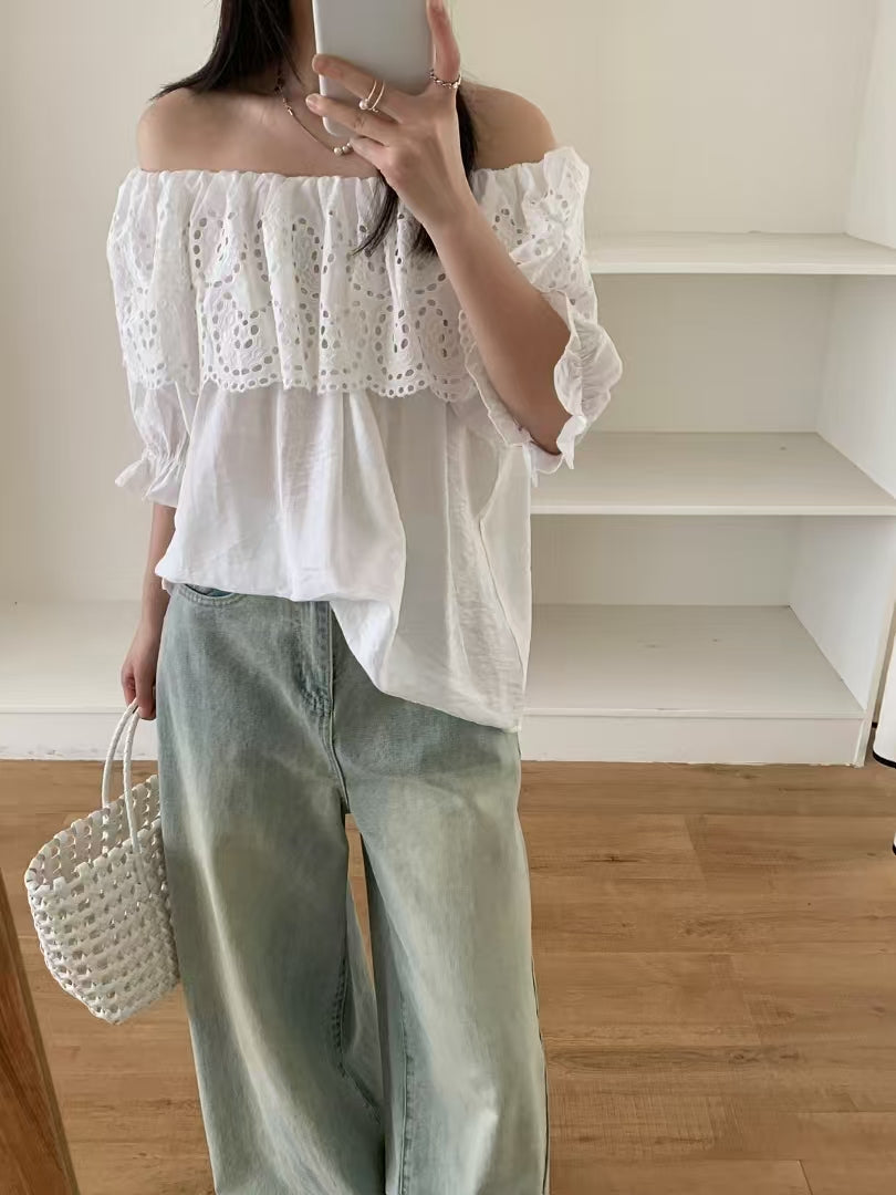 柔美的花園 | 精緻縷空勾花一字肩上衣