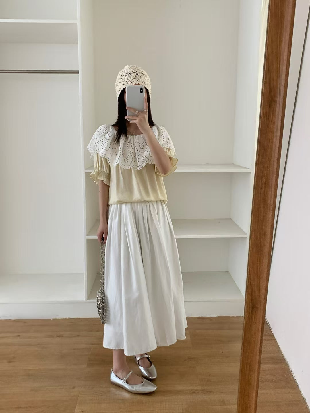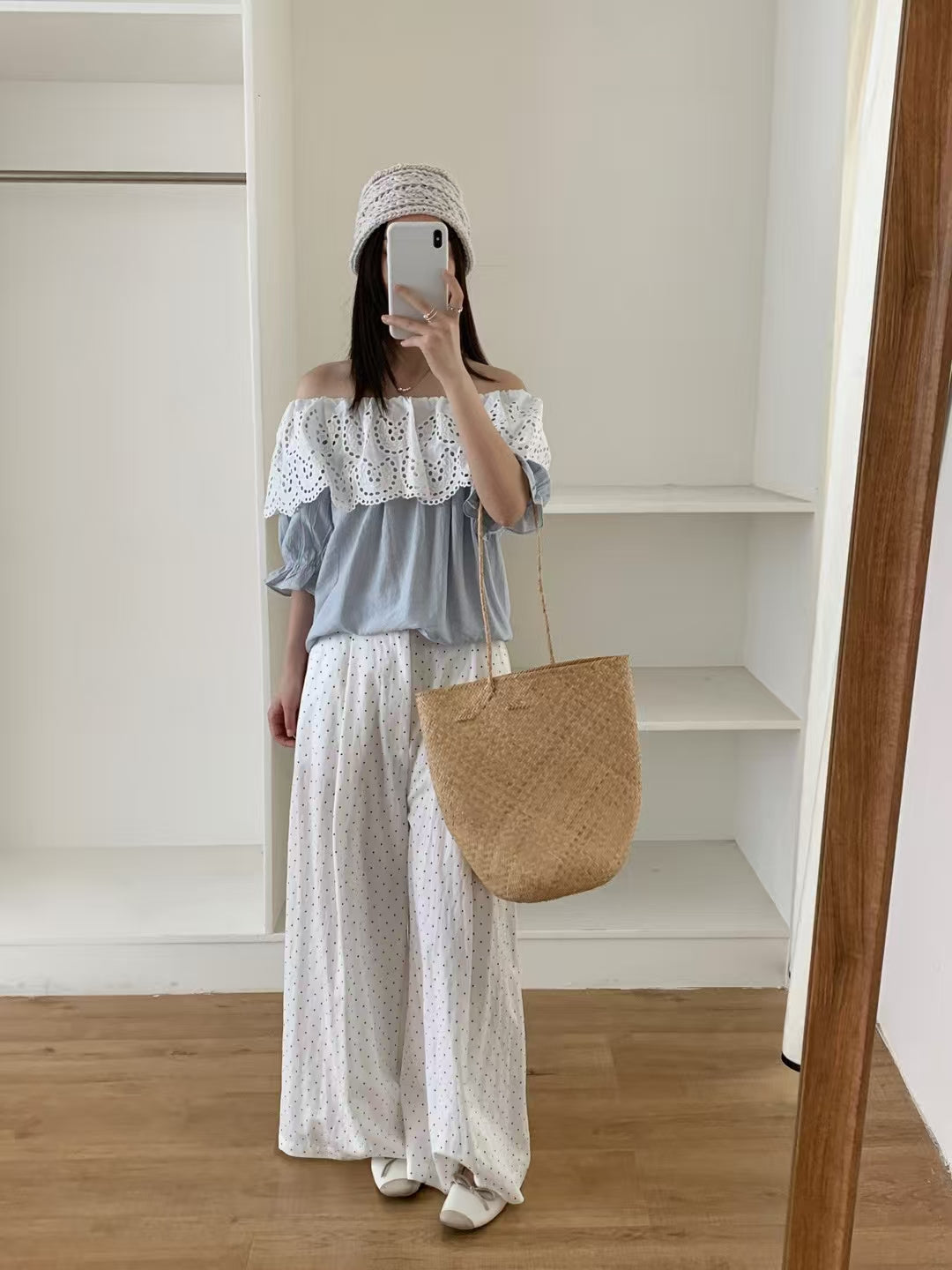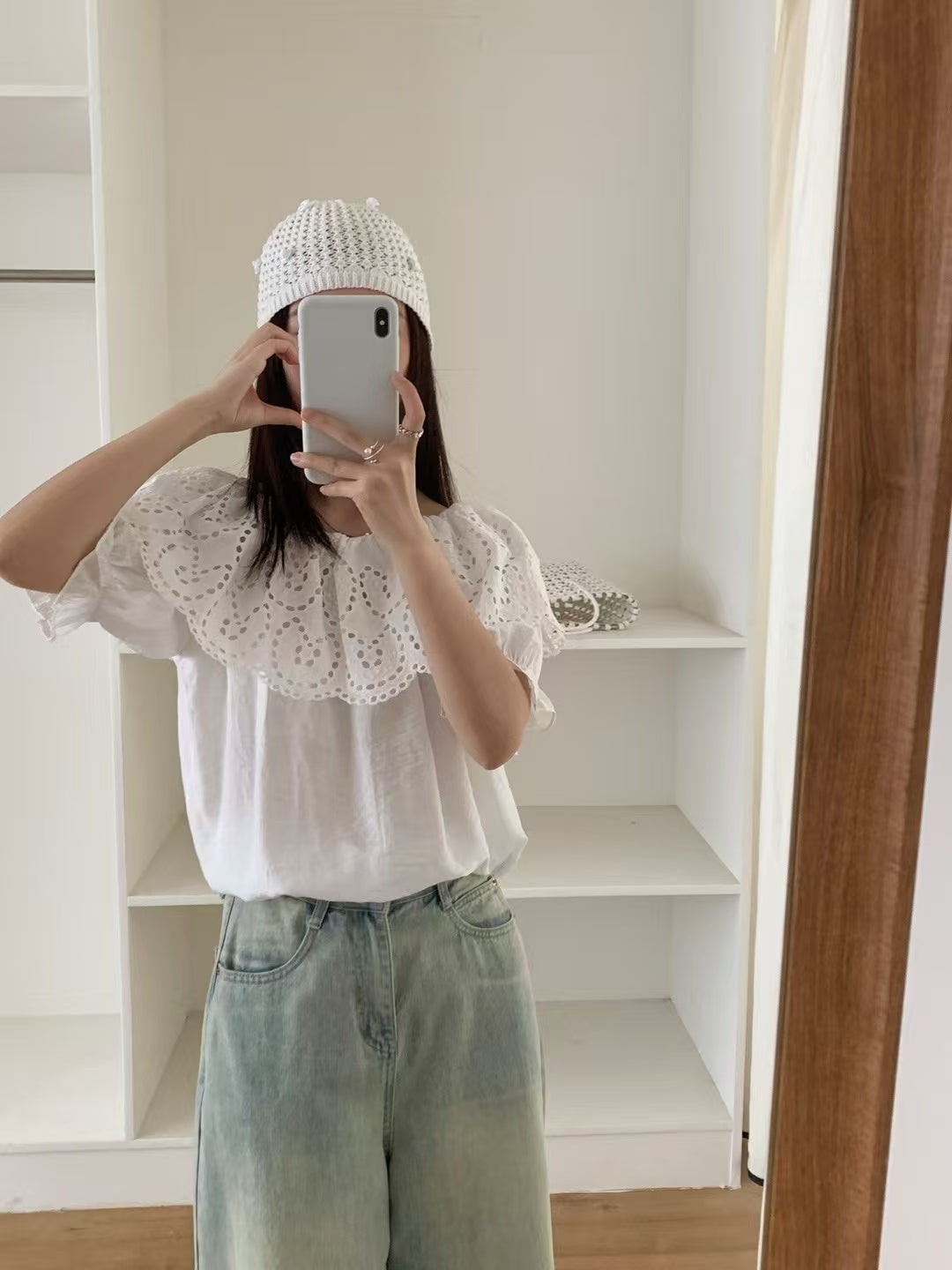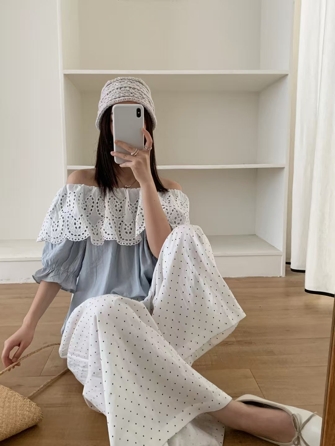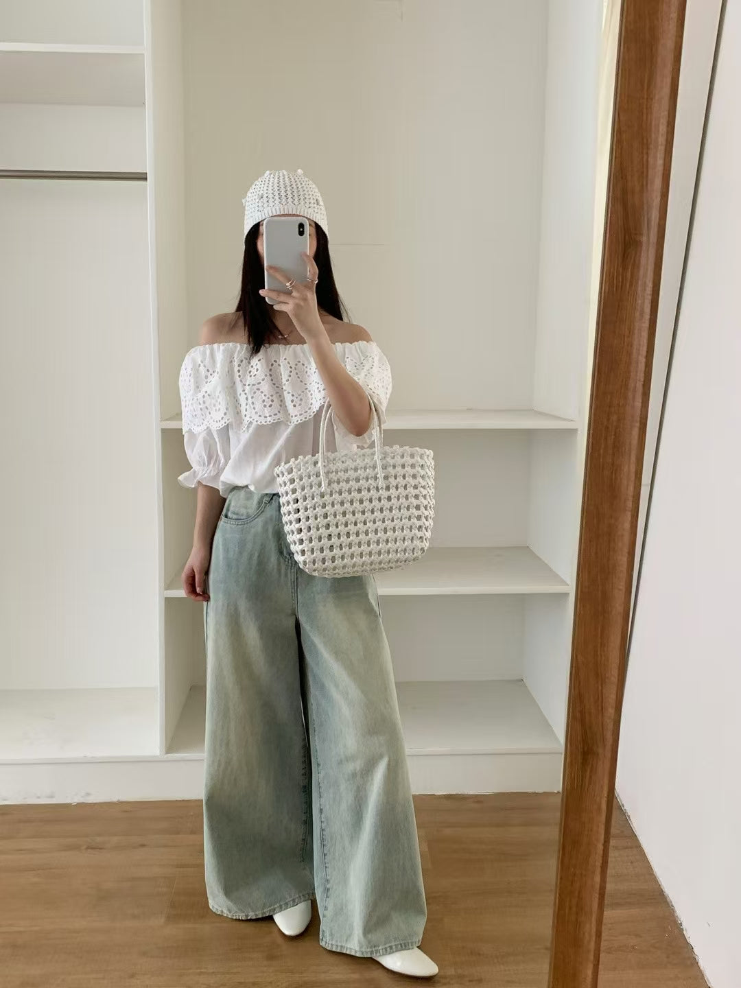 柔美的花園 | 精緻縷空勾花一字肩上衣