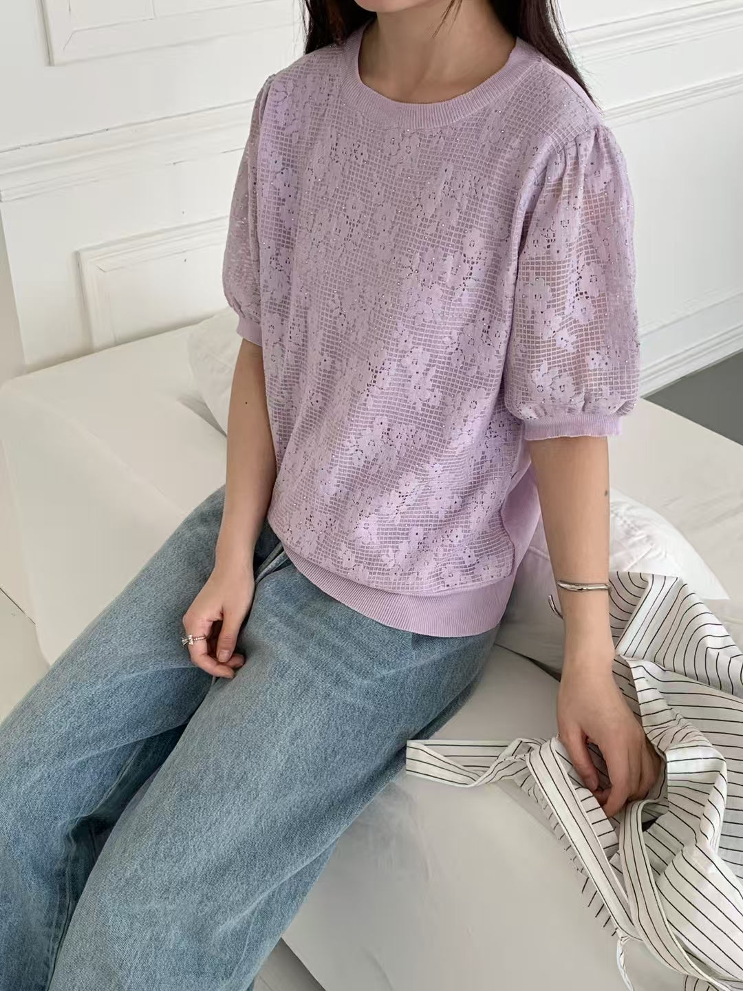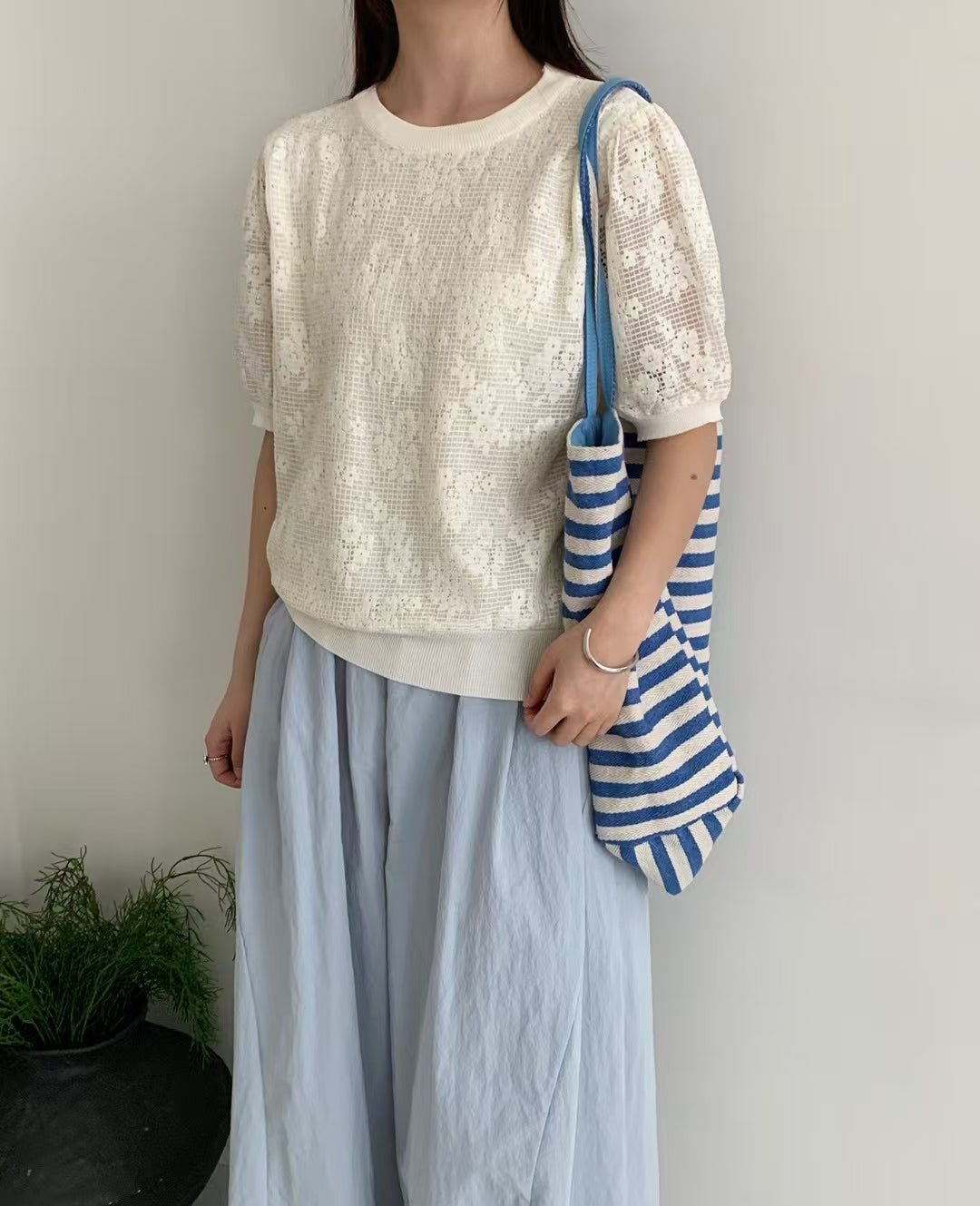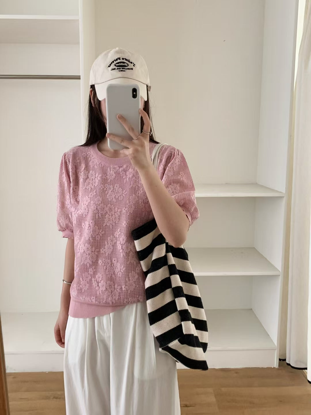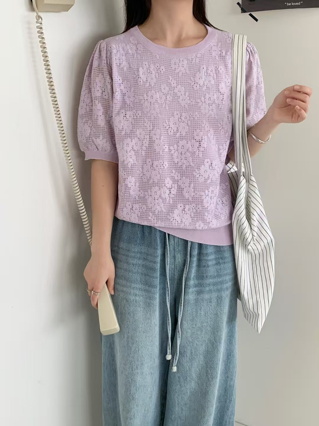 花漾的浪漫 | 格紋織花熨石針織上衣