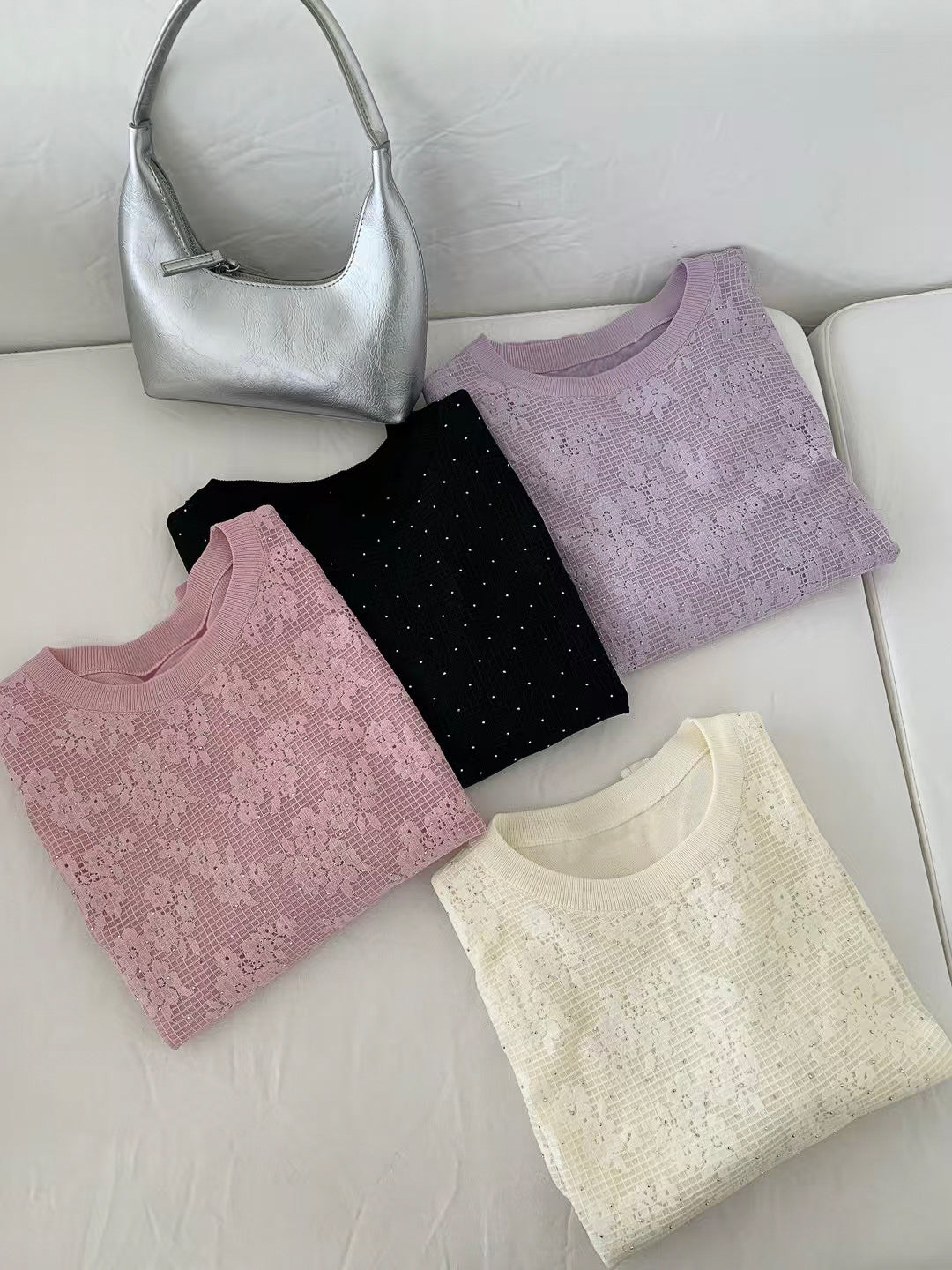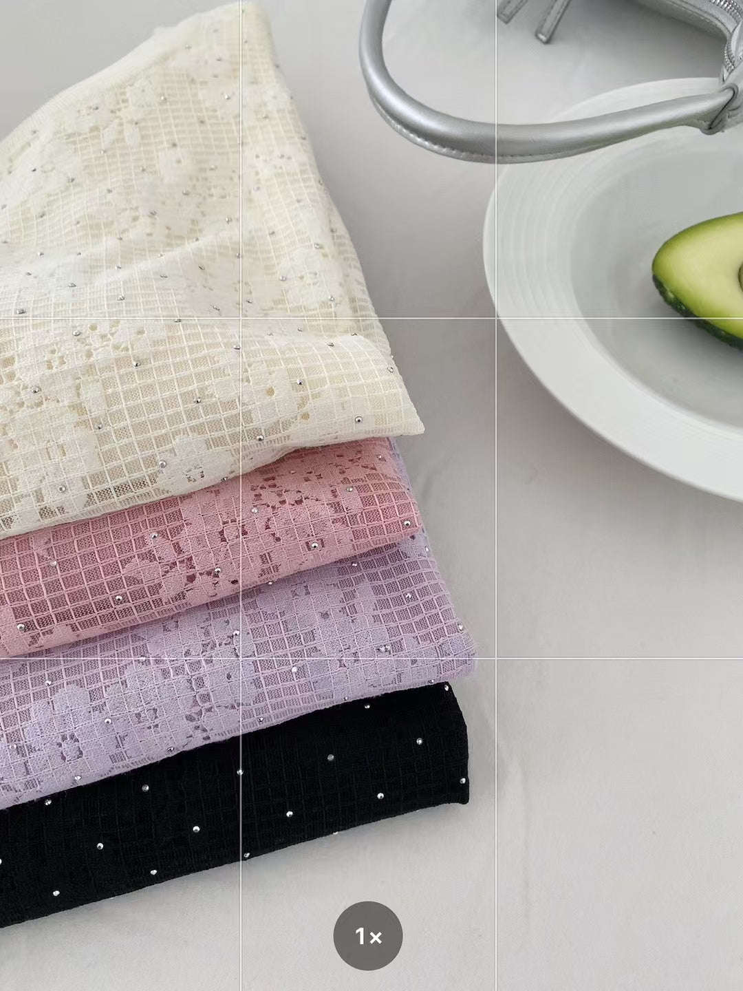 格紋紋理蕾絲 + 熨銀石點綴的設計