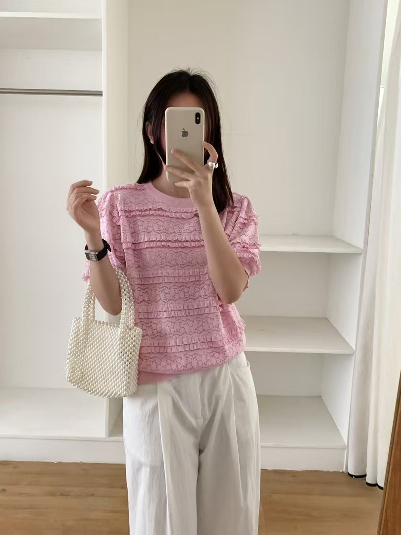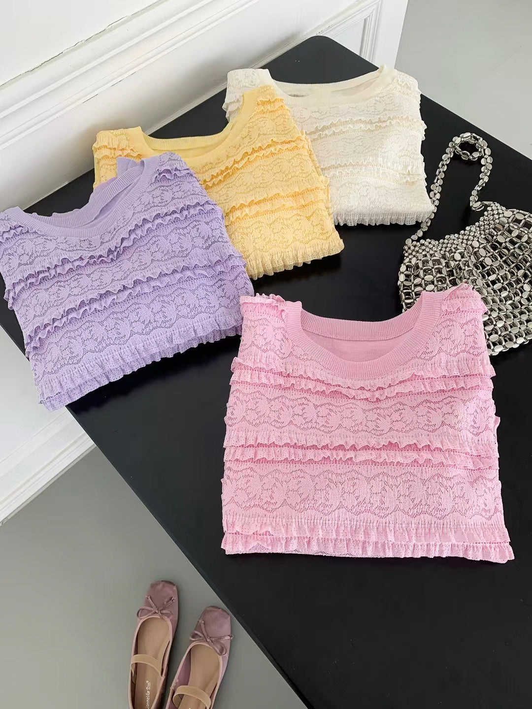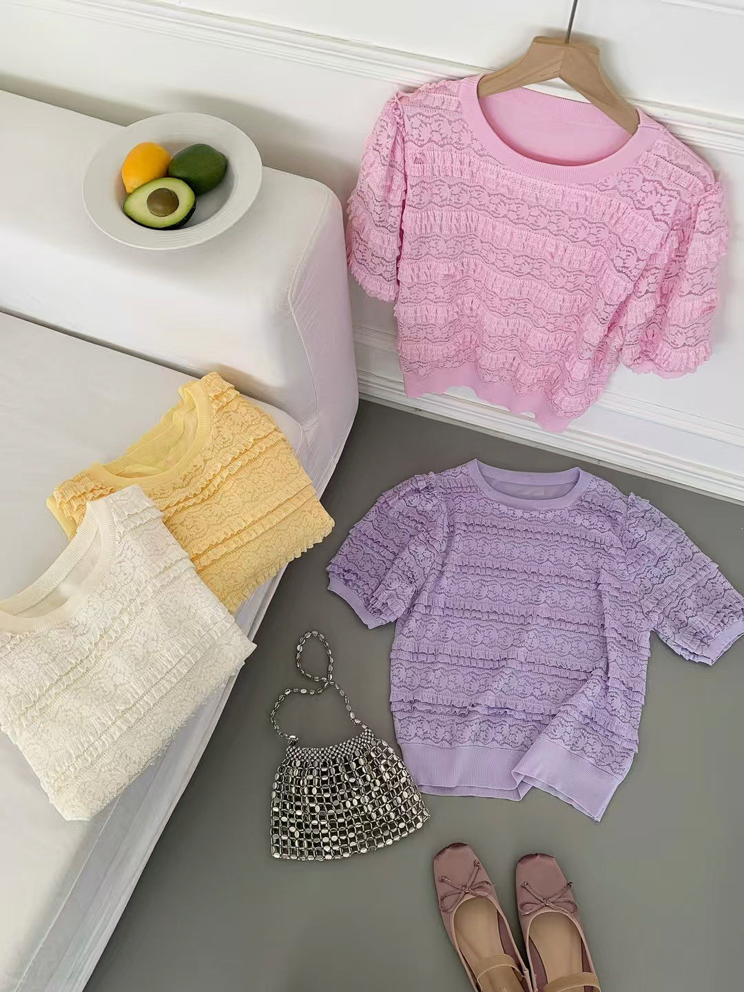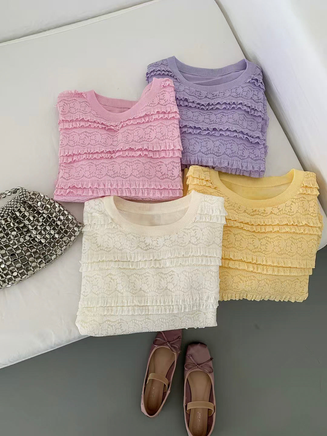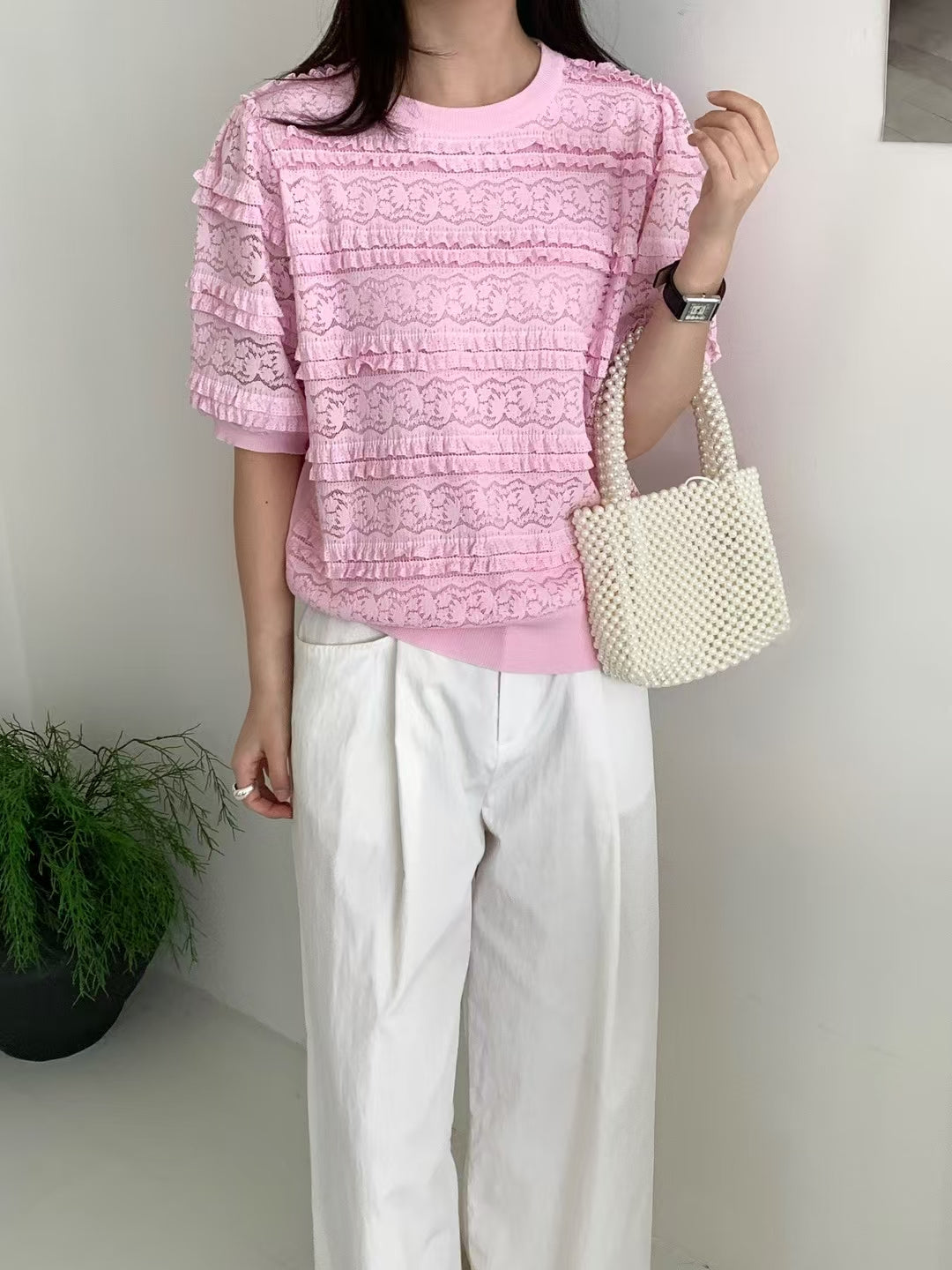 初夏的微風 | 多層次荷葉邊蕾絲針織上衣