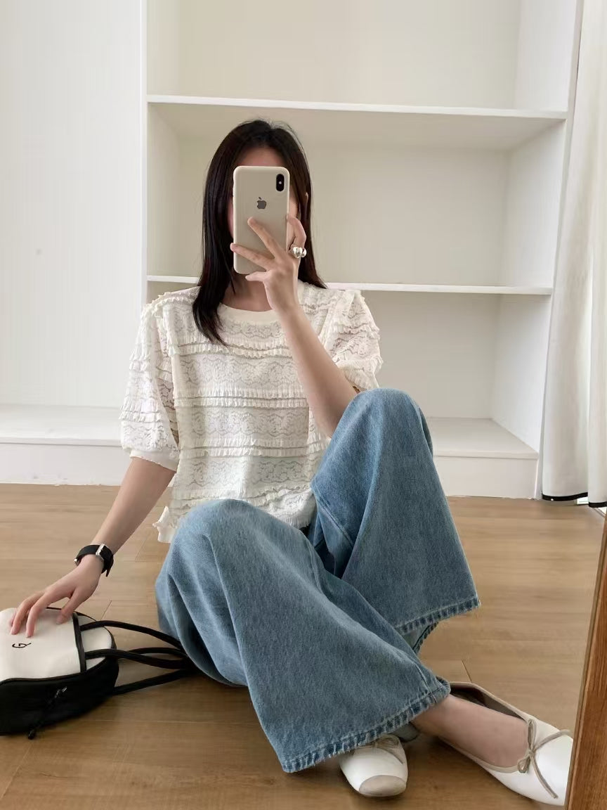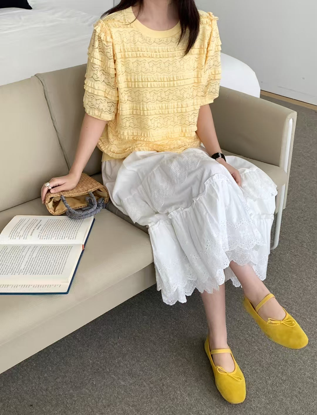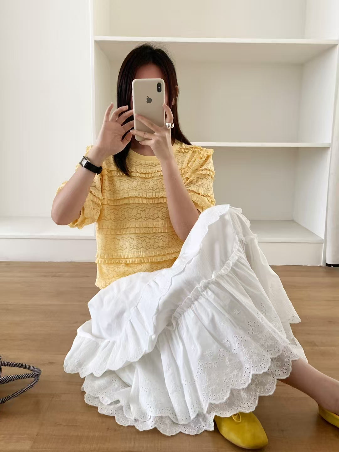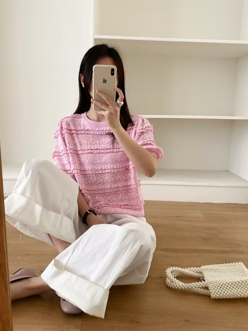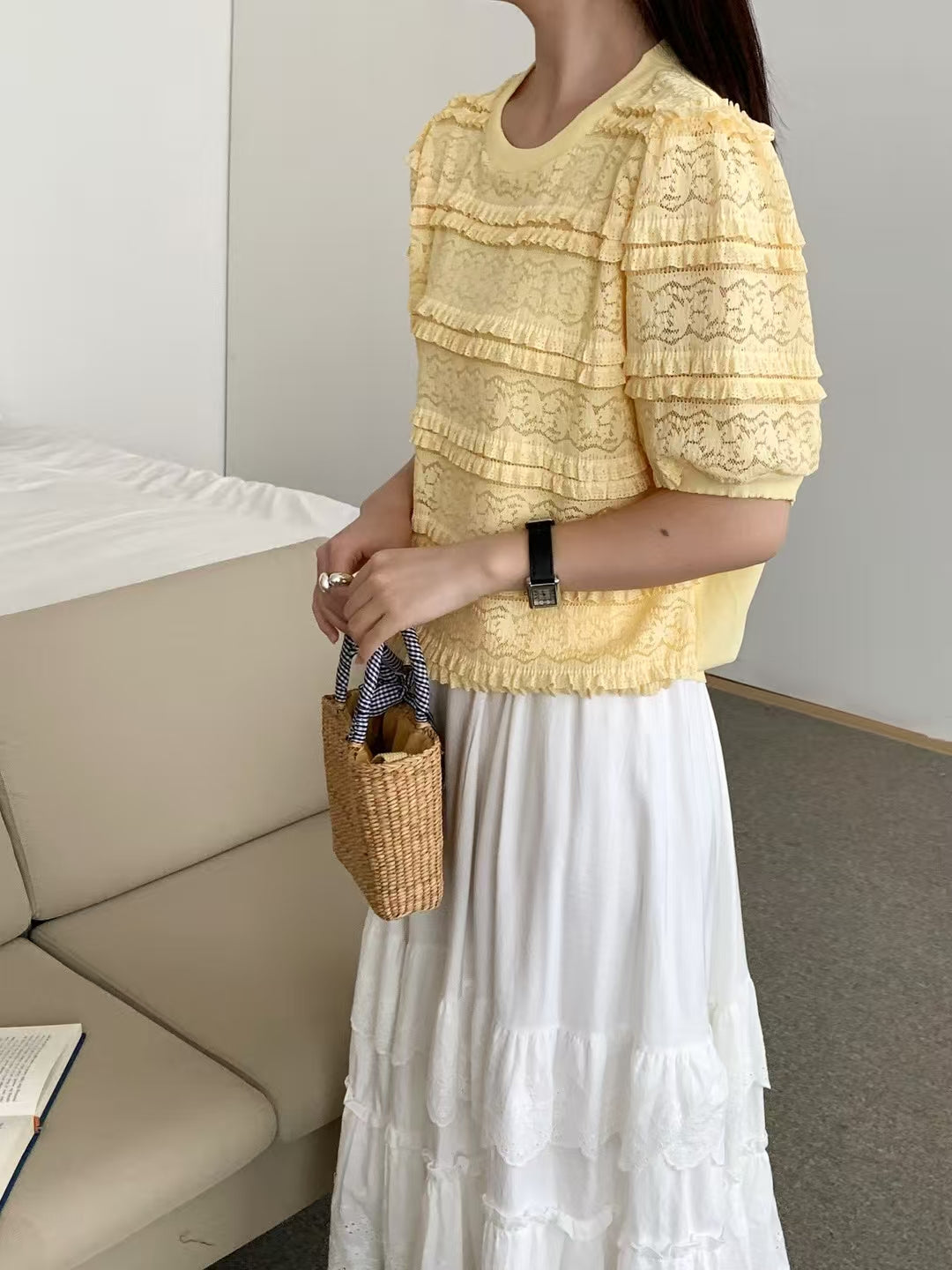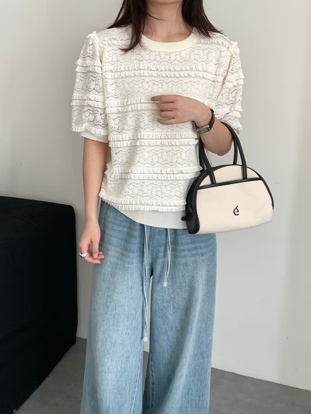 初夏的微風 | 多層次荷葉邊蕾絲針織上衣