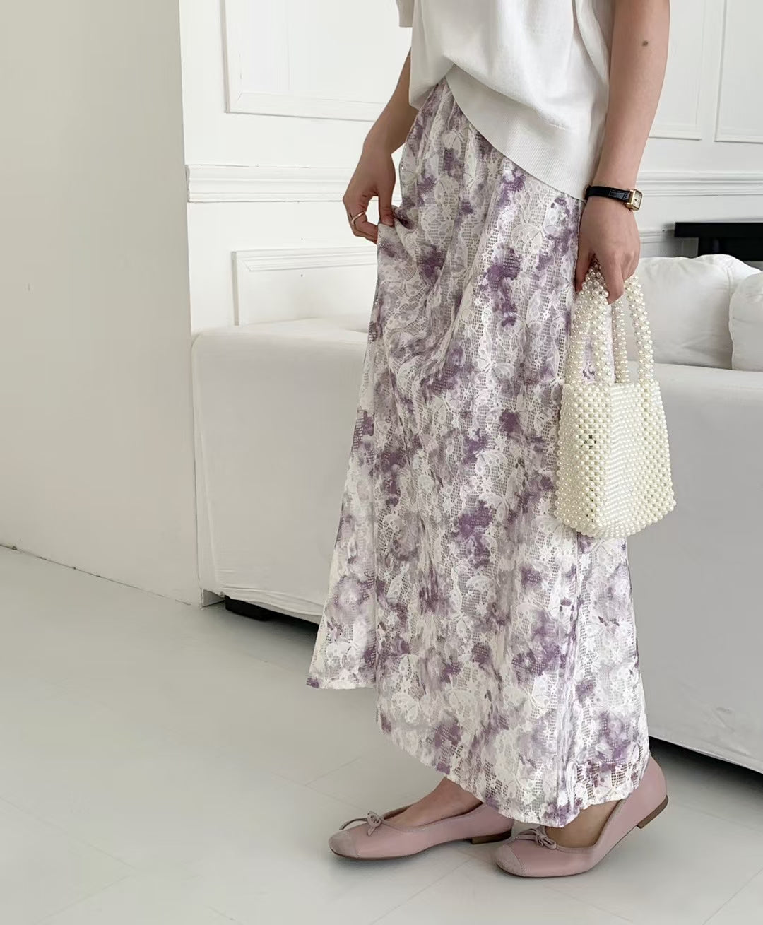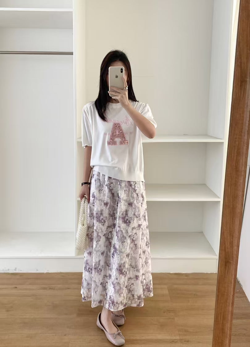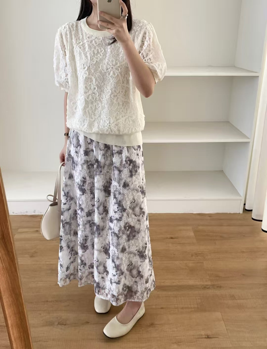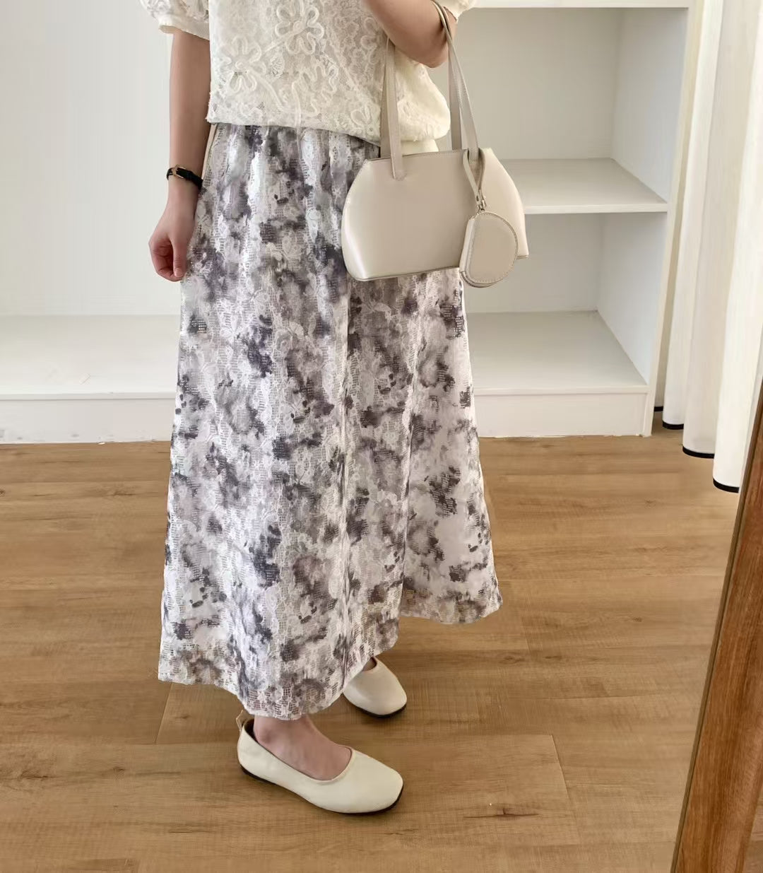 晨霧的邂逅 | 水墨暈染蕾絲半截裙