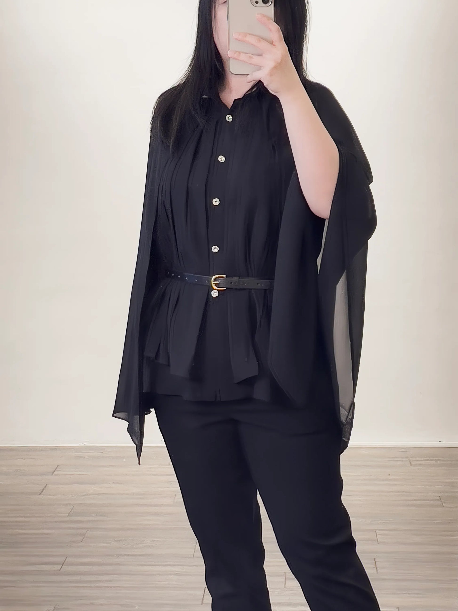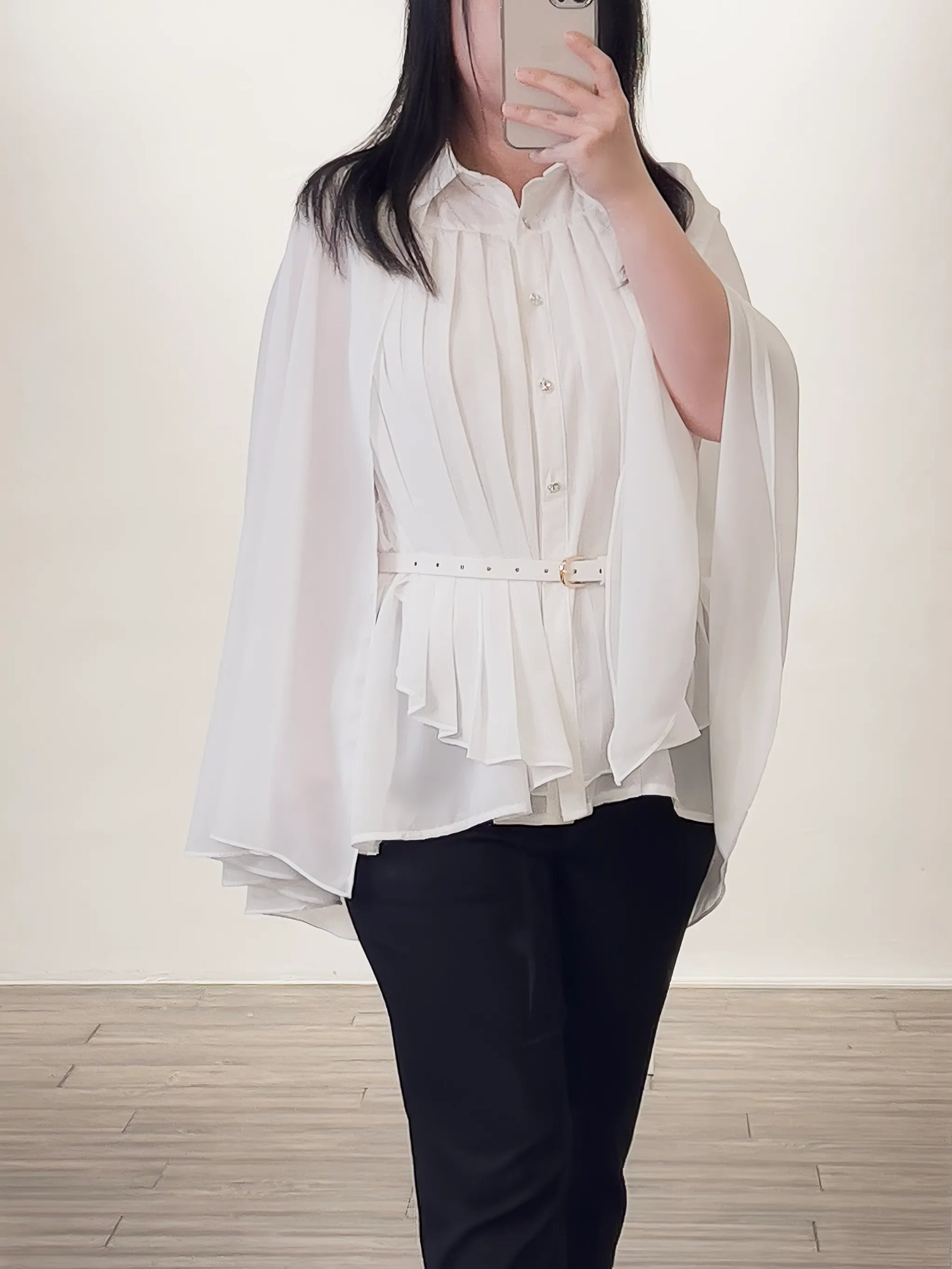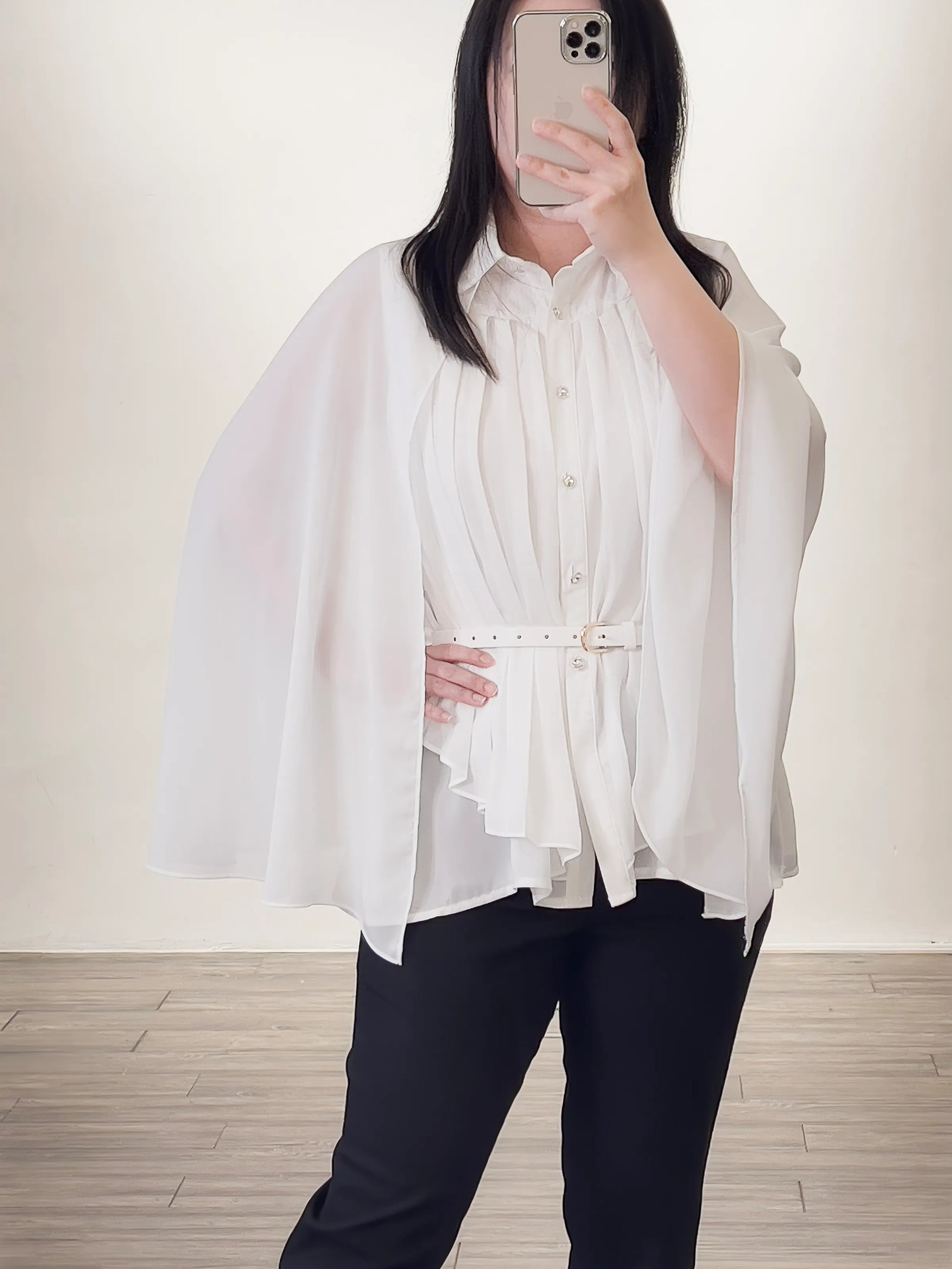 優雅的晚風 | 可拆式披肩雪紡上衣