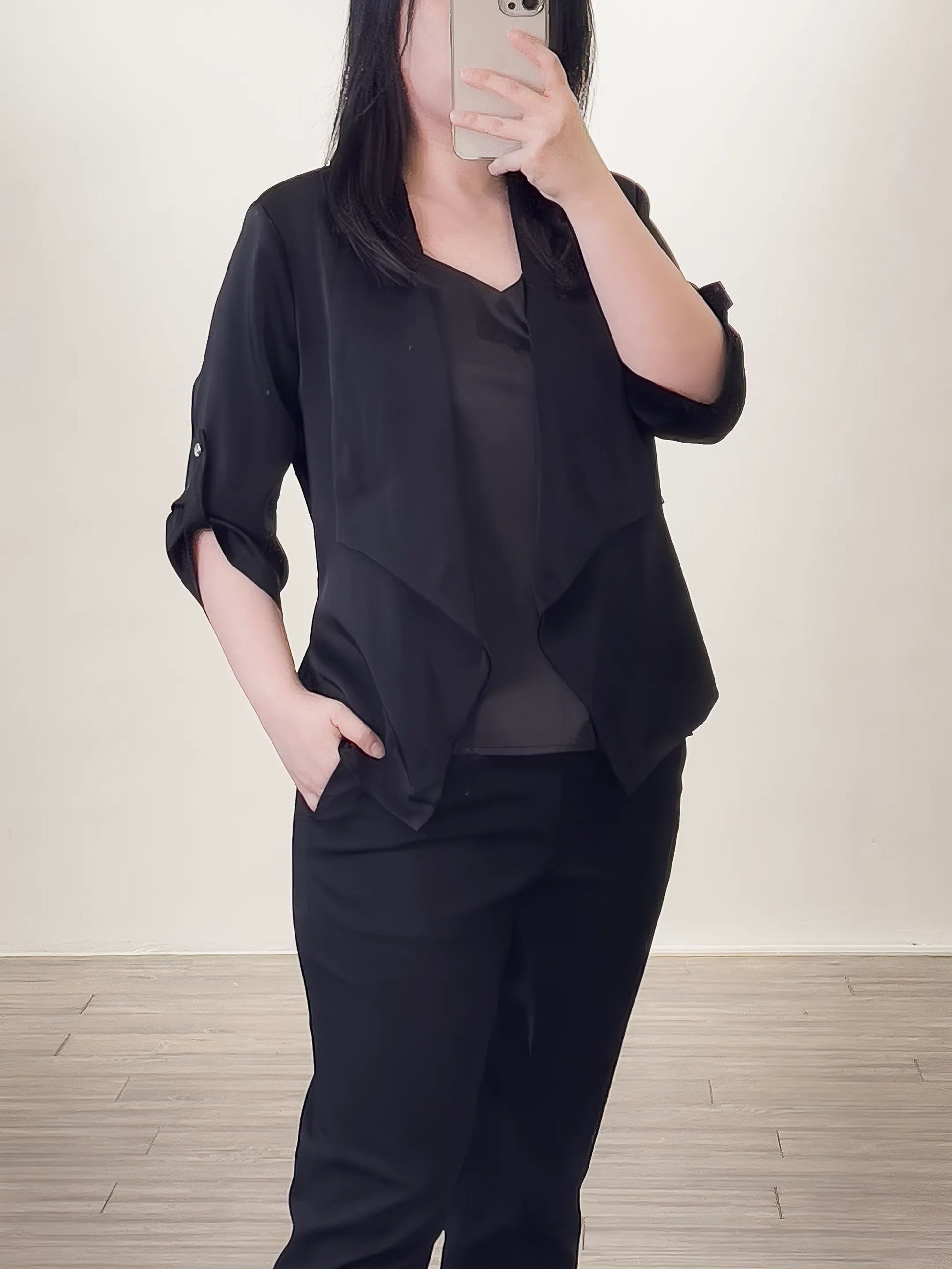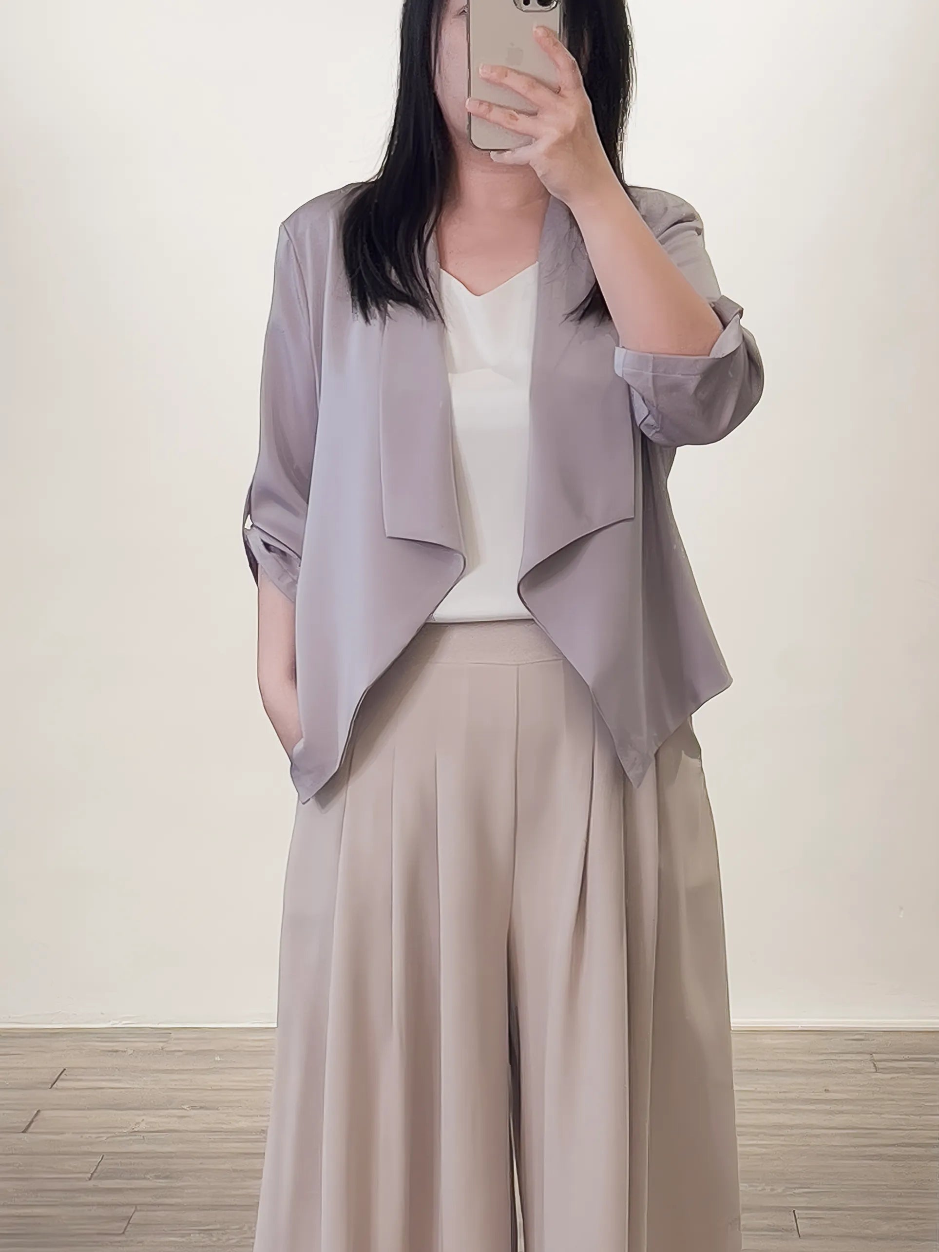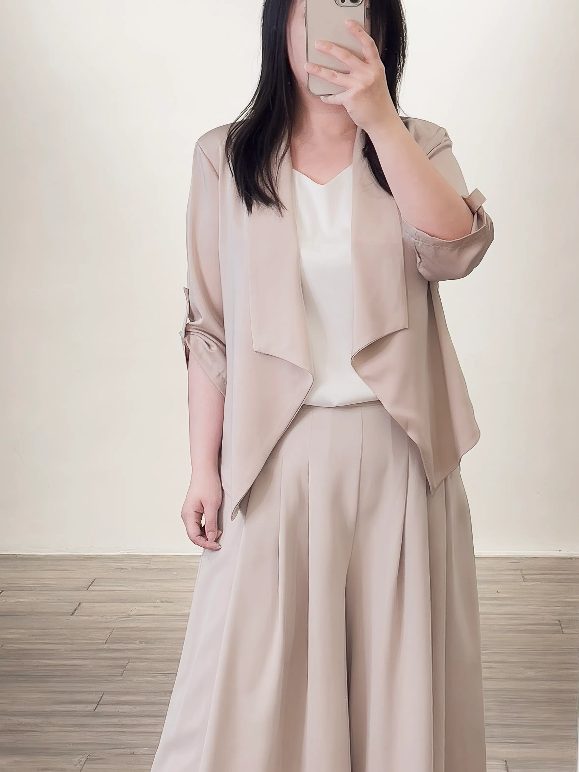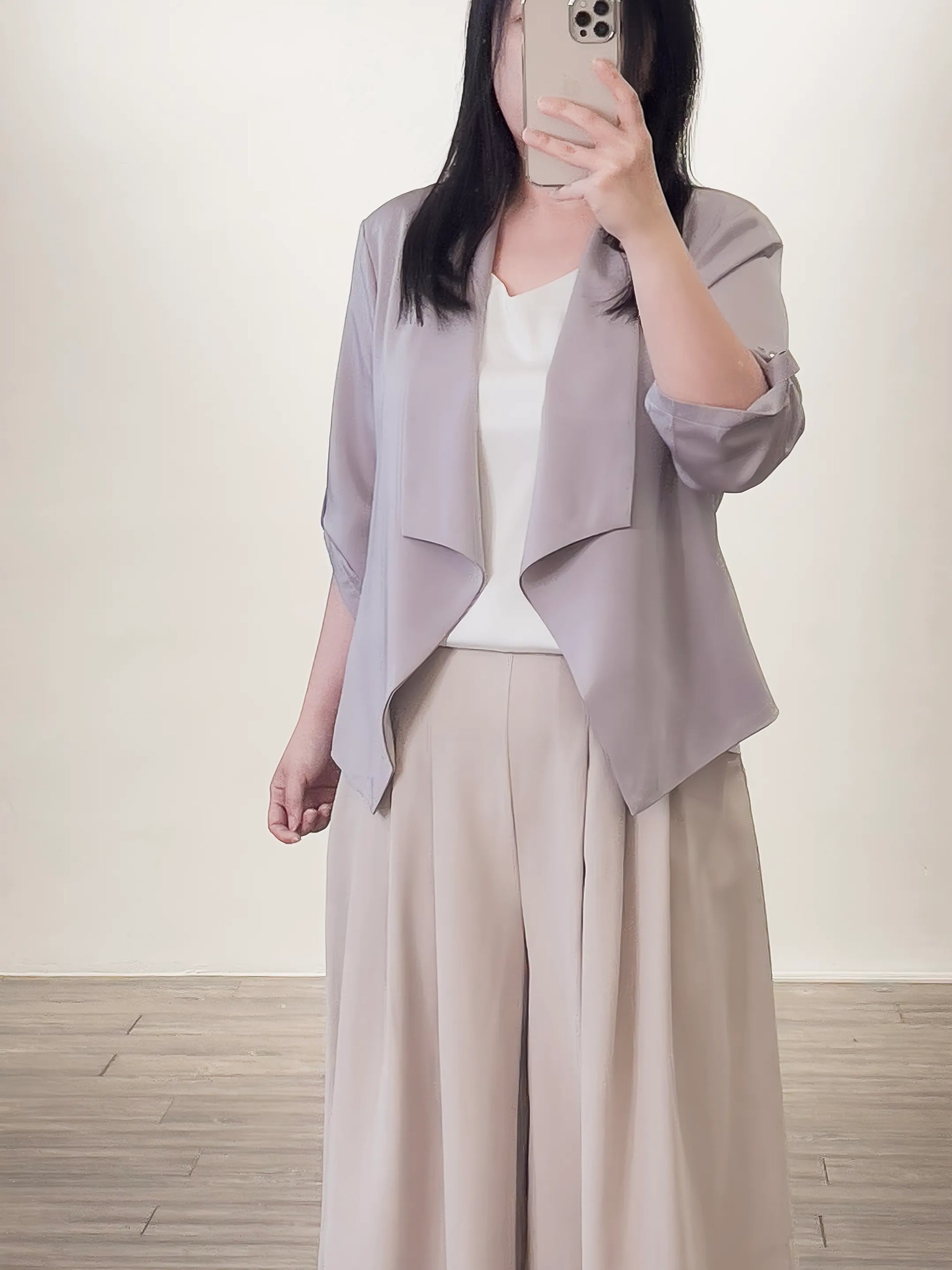 優雅的約會 | 垂領綢緞混紡七分袖外套