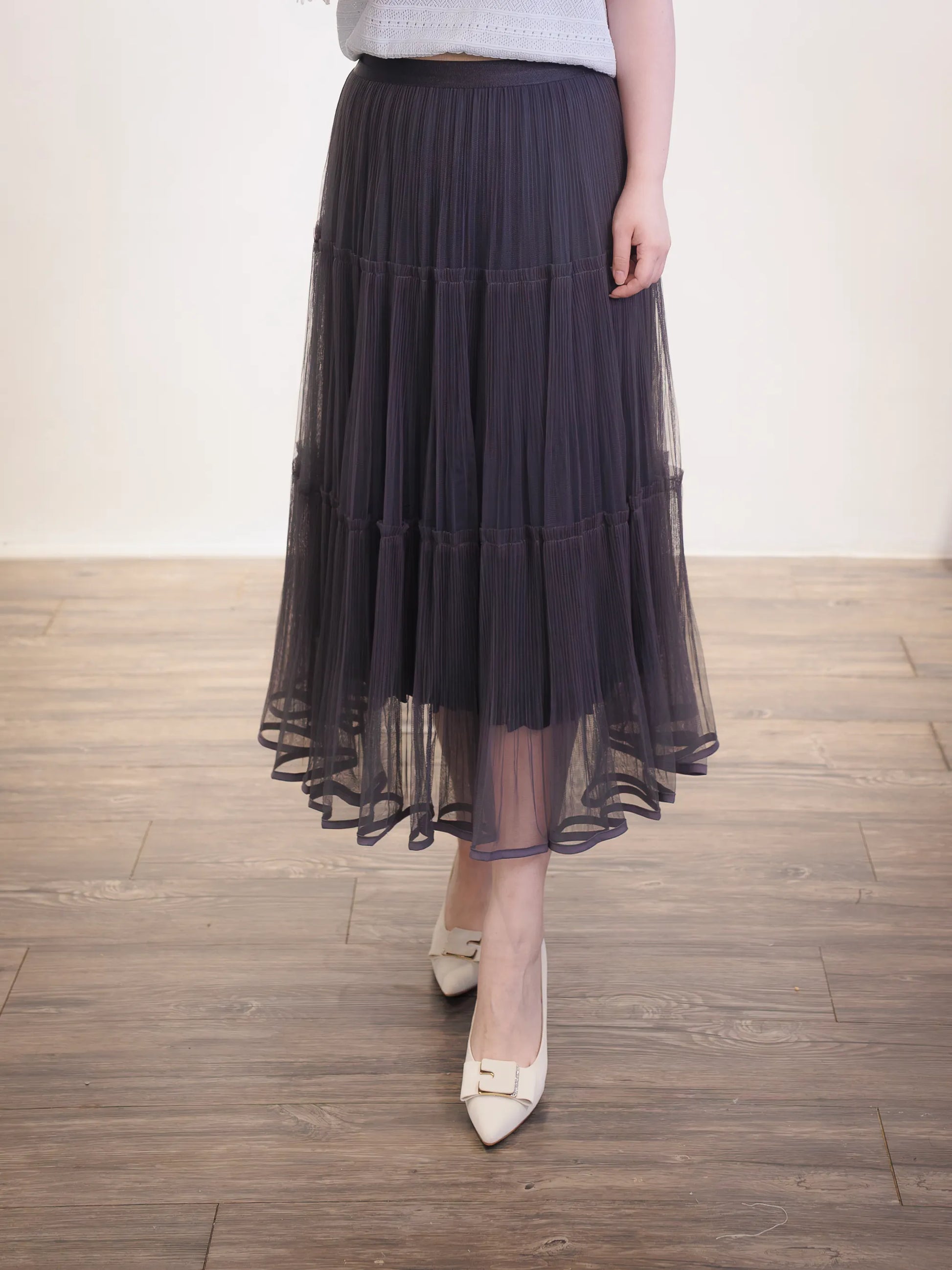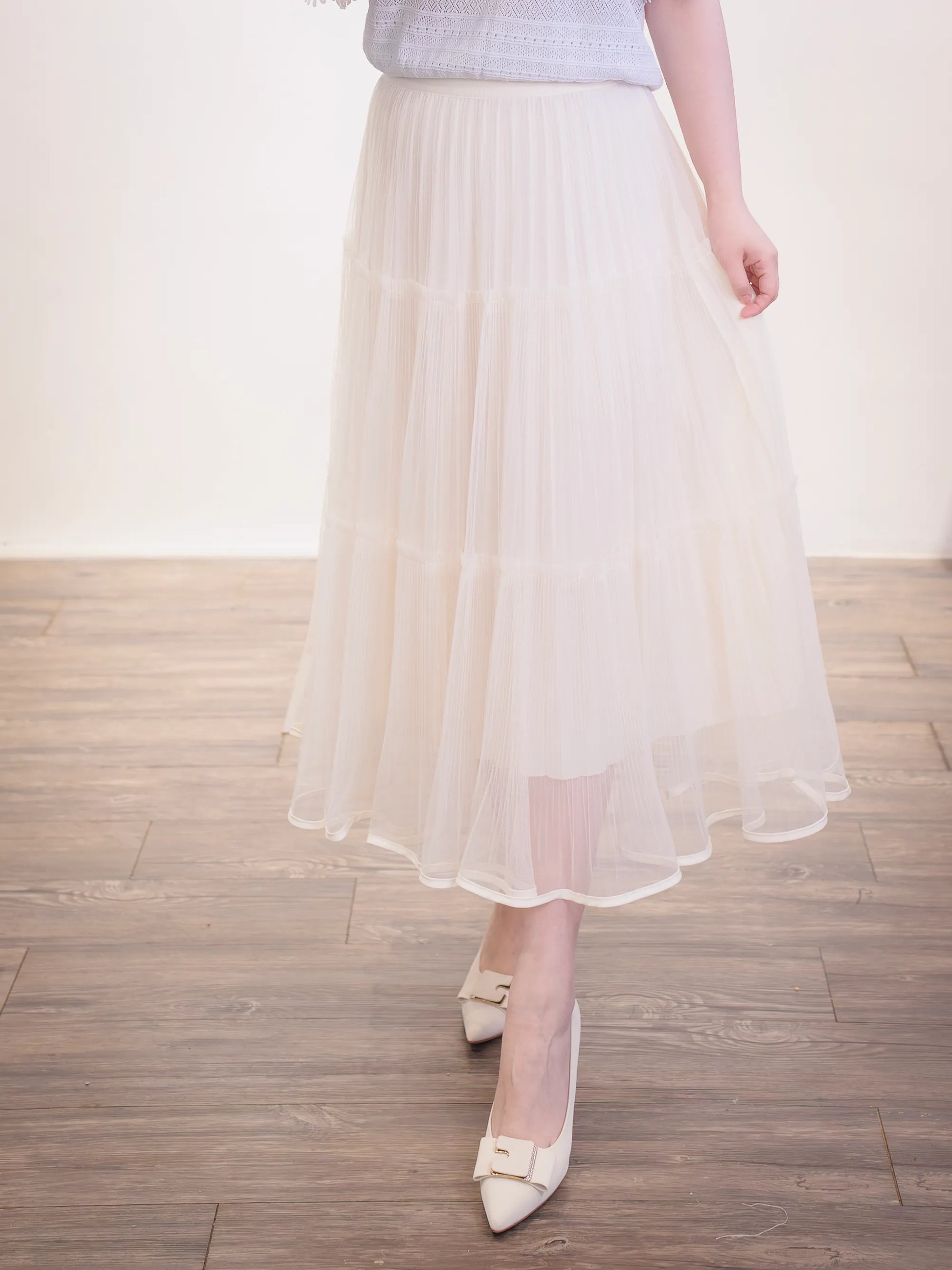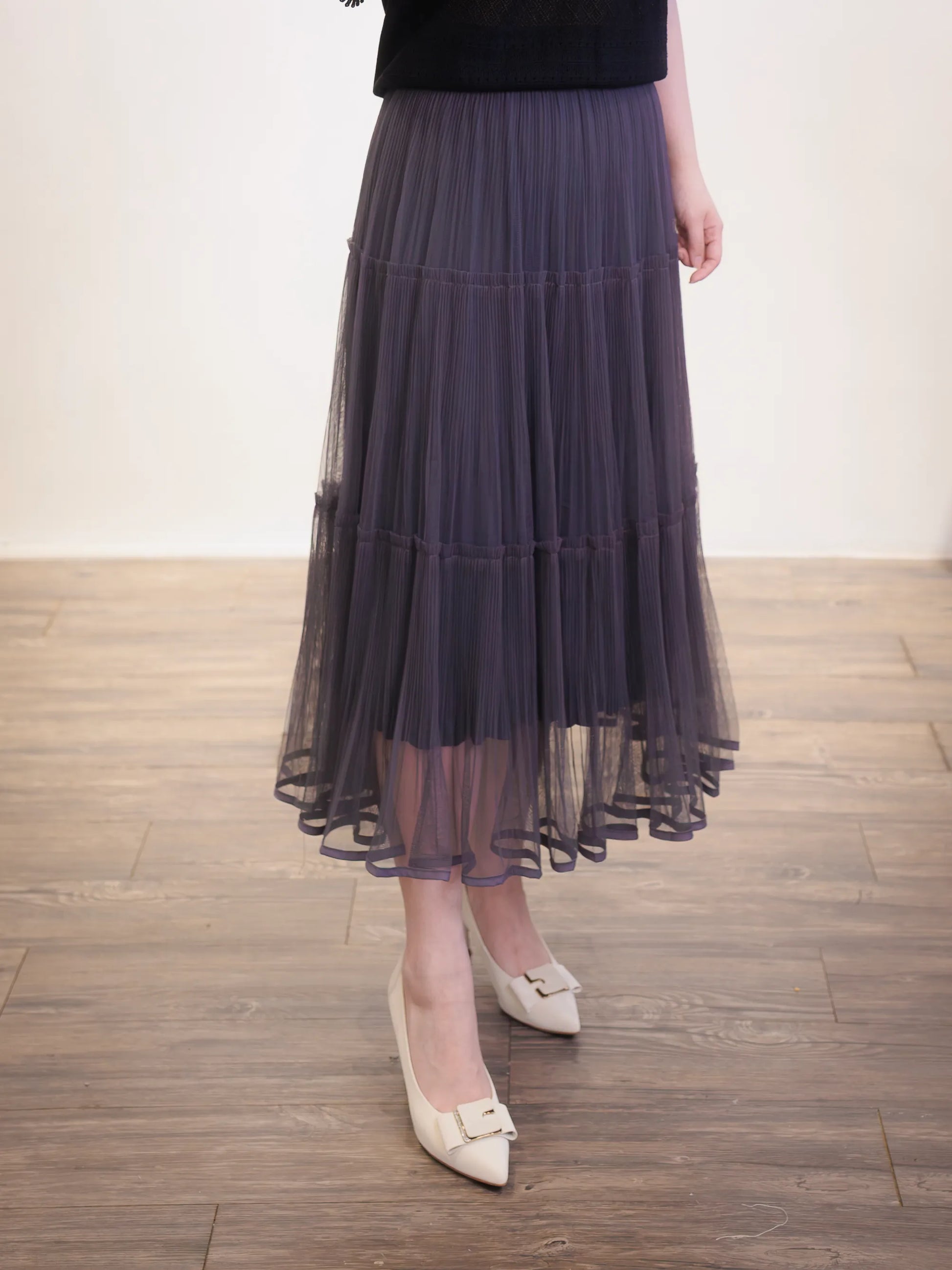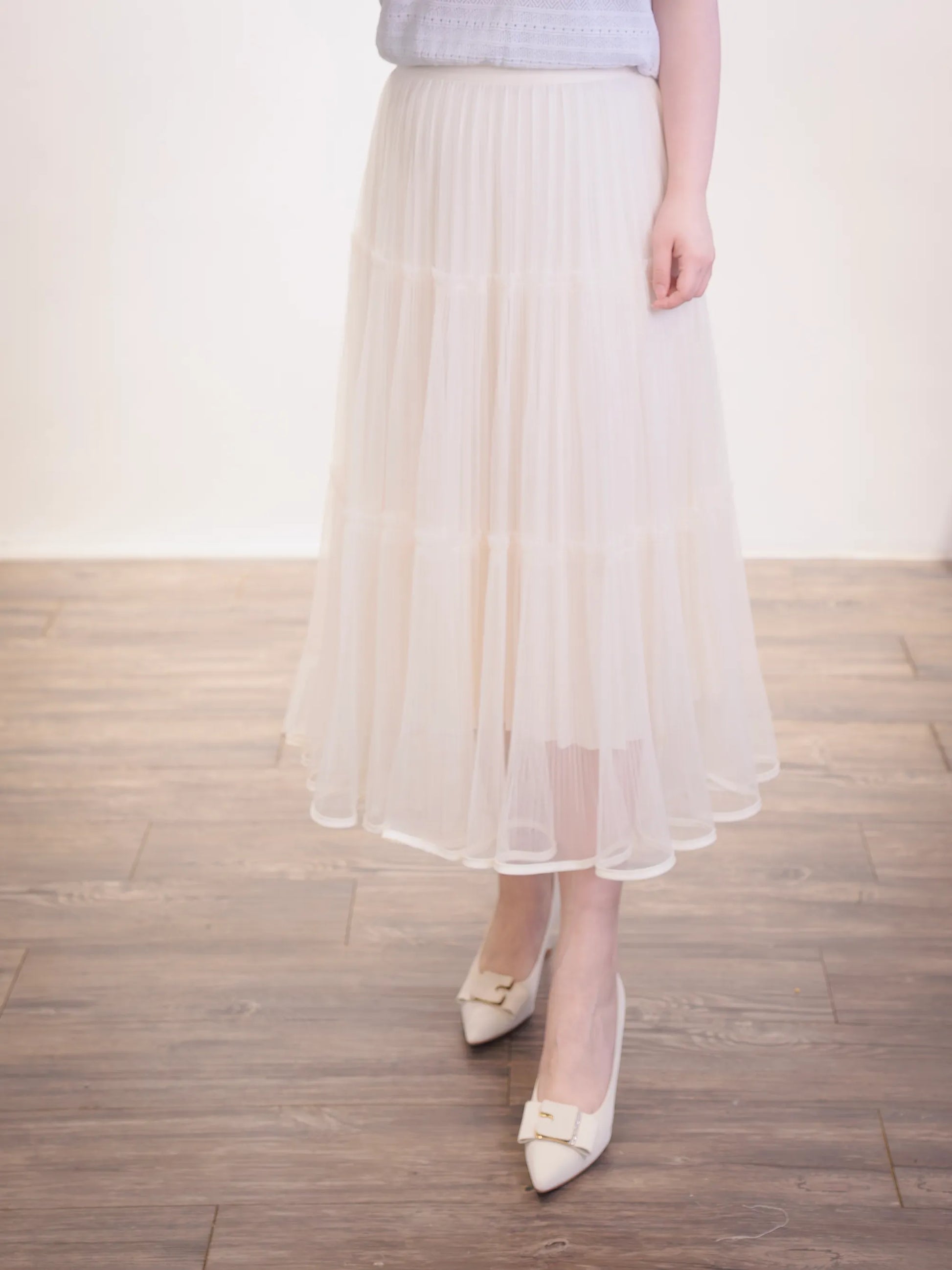 溫柔的晚霞 | 壓褶網紗雪紡半截裙