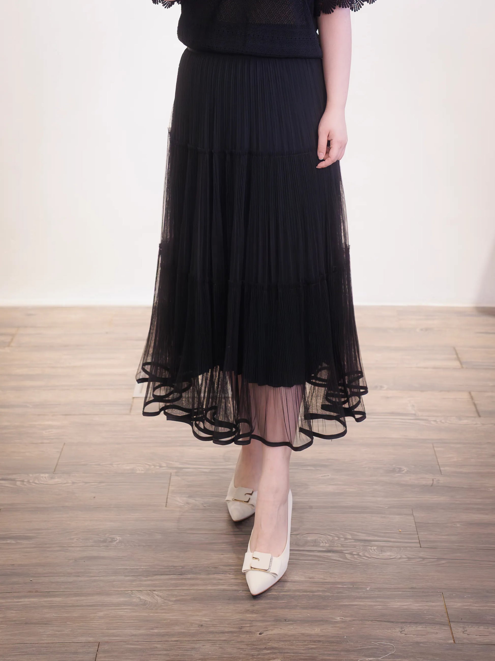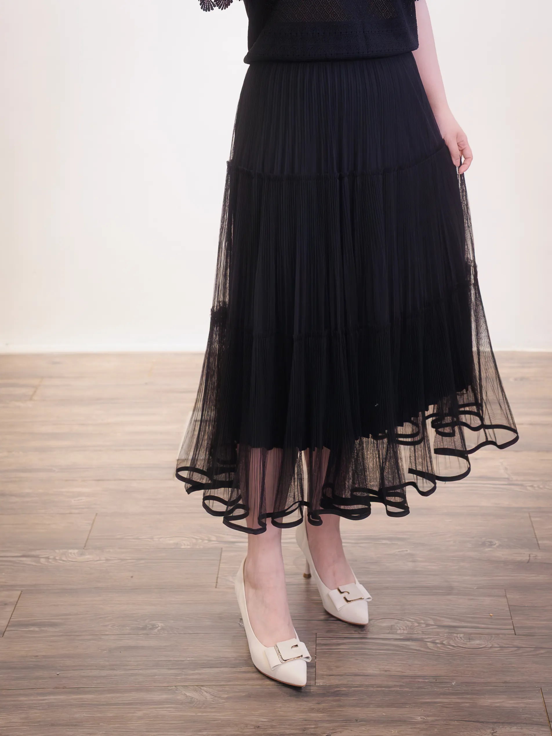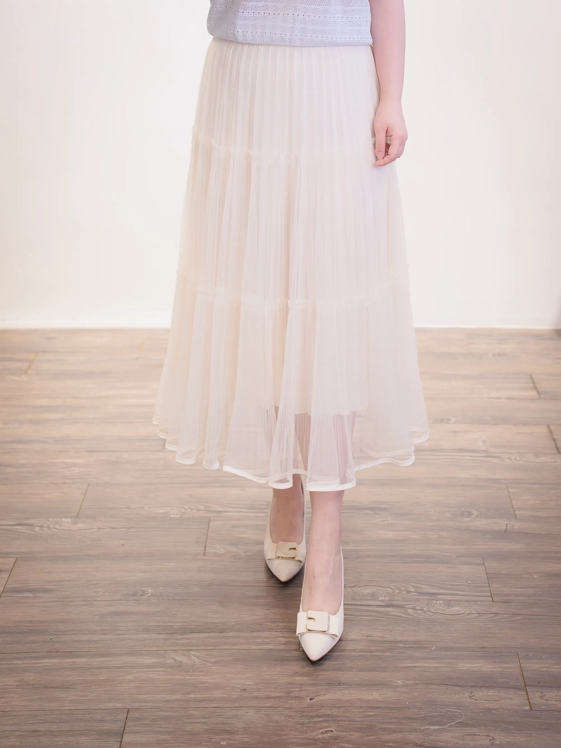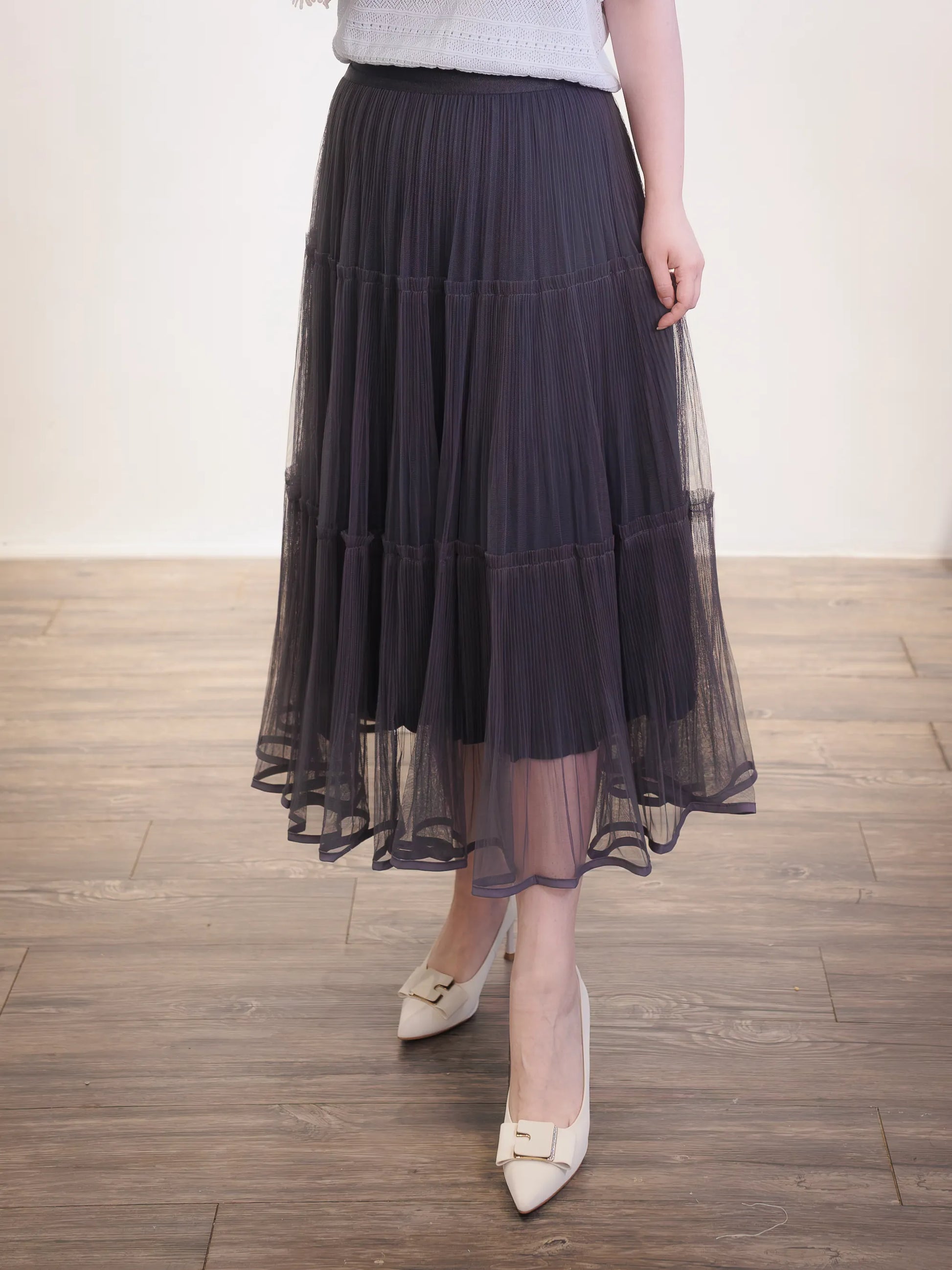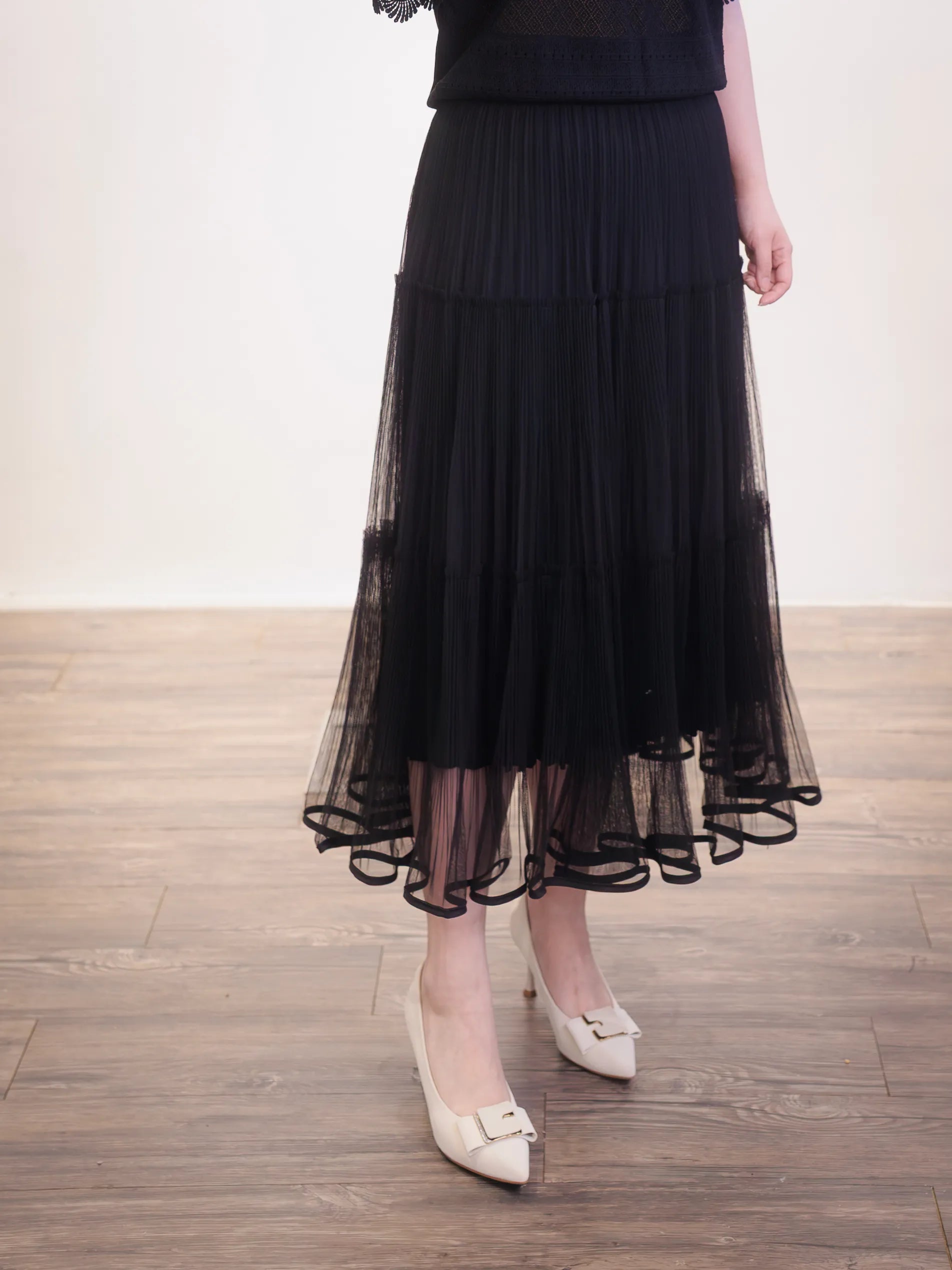 溫柔的晚霞 | 壓褶網紗雪紡半截裙