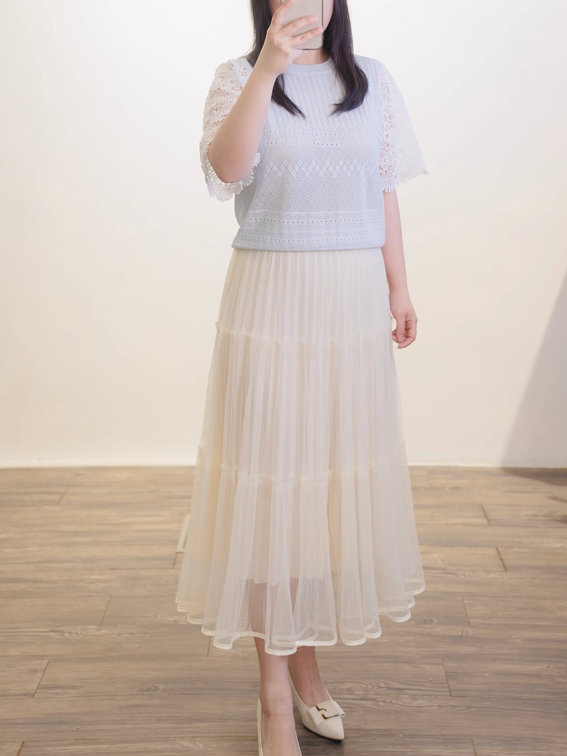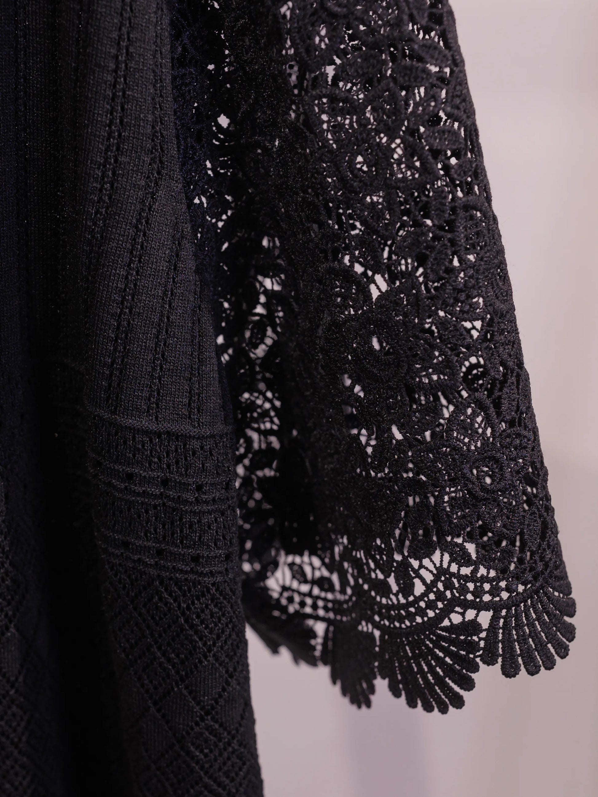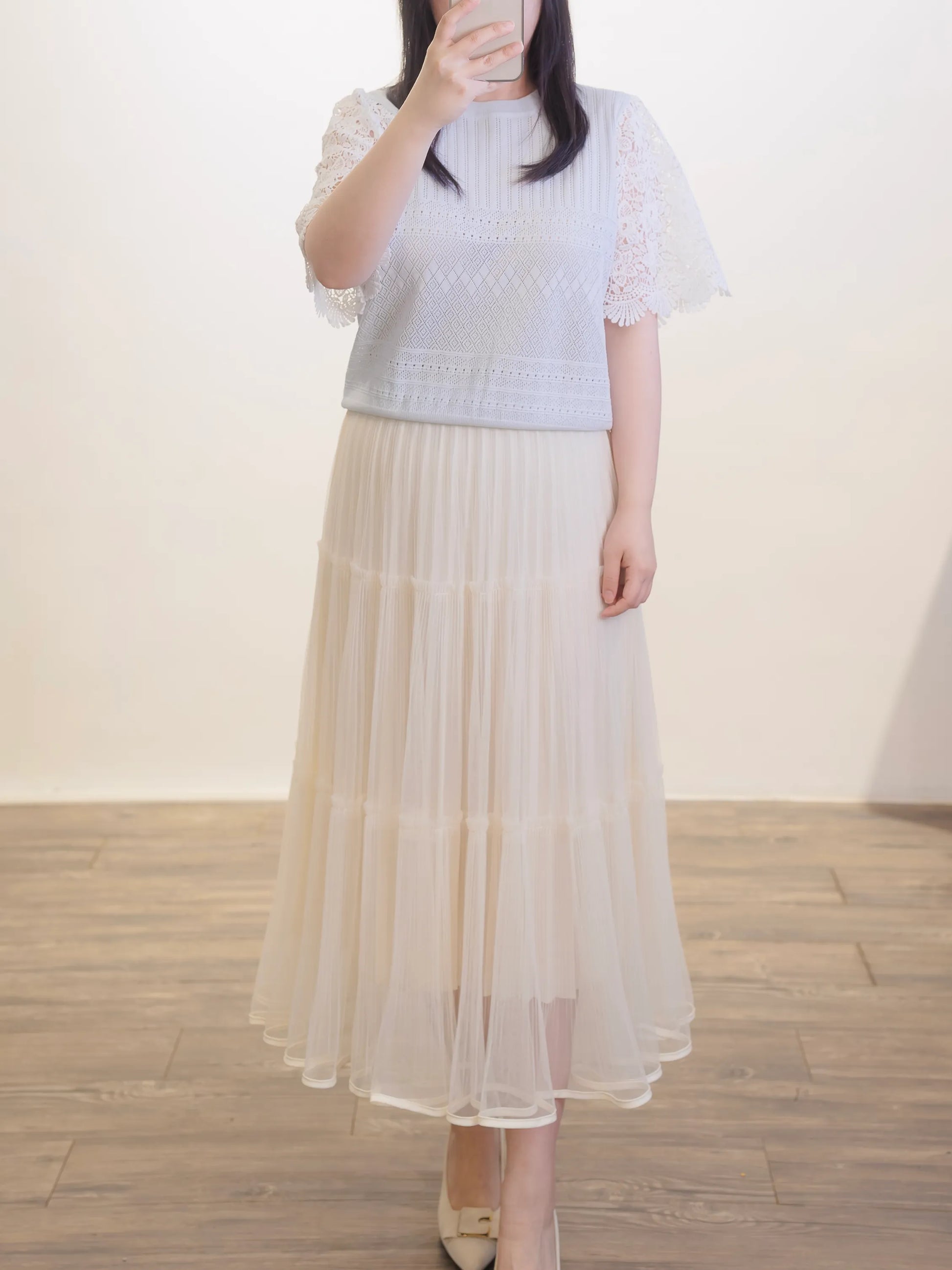 海邊的假期 | 勾花拼接立體花紋混紡針織上衣