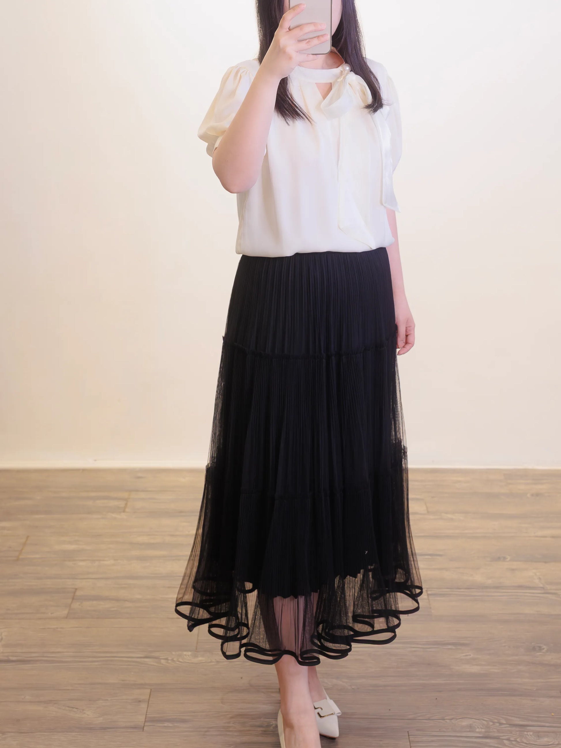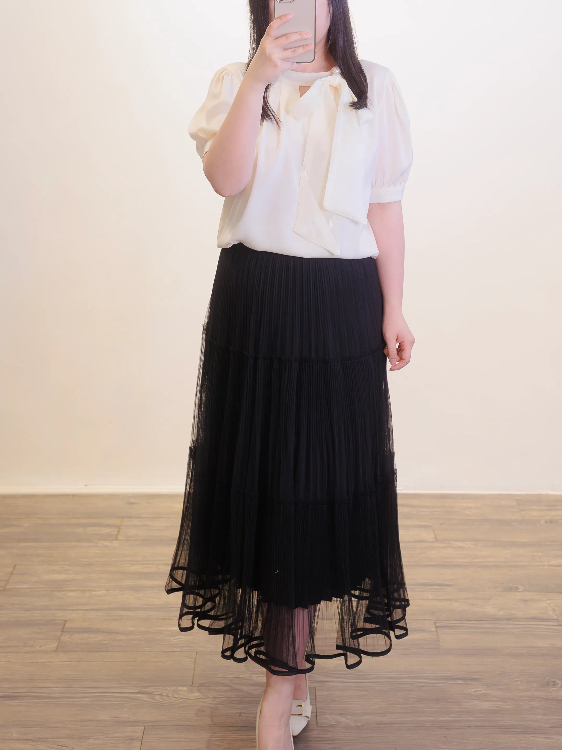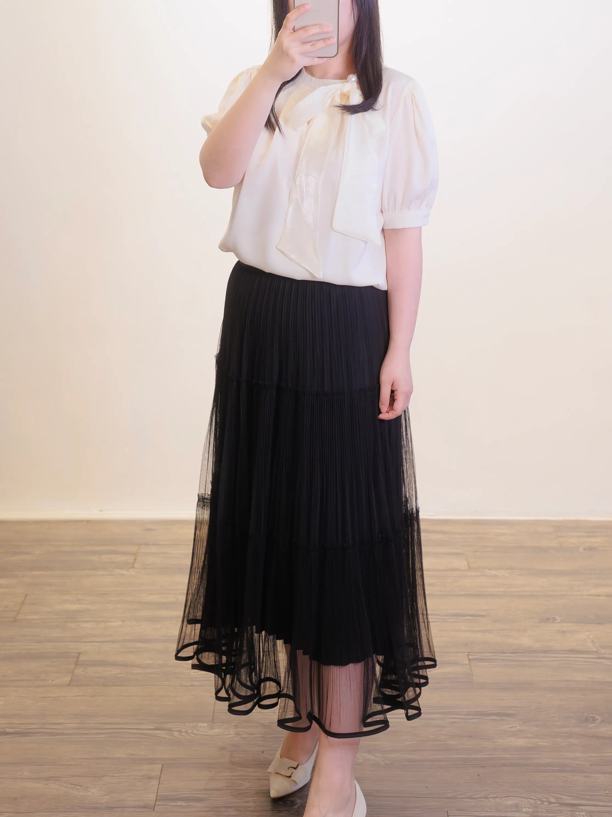 夢幻的芭蕾舞台 | 蝴蝶結綁帶光潔綢緞上衣
