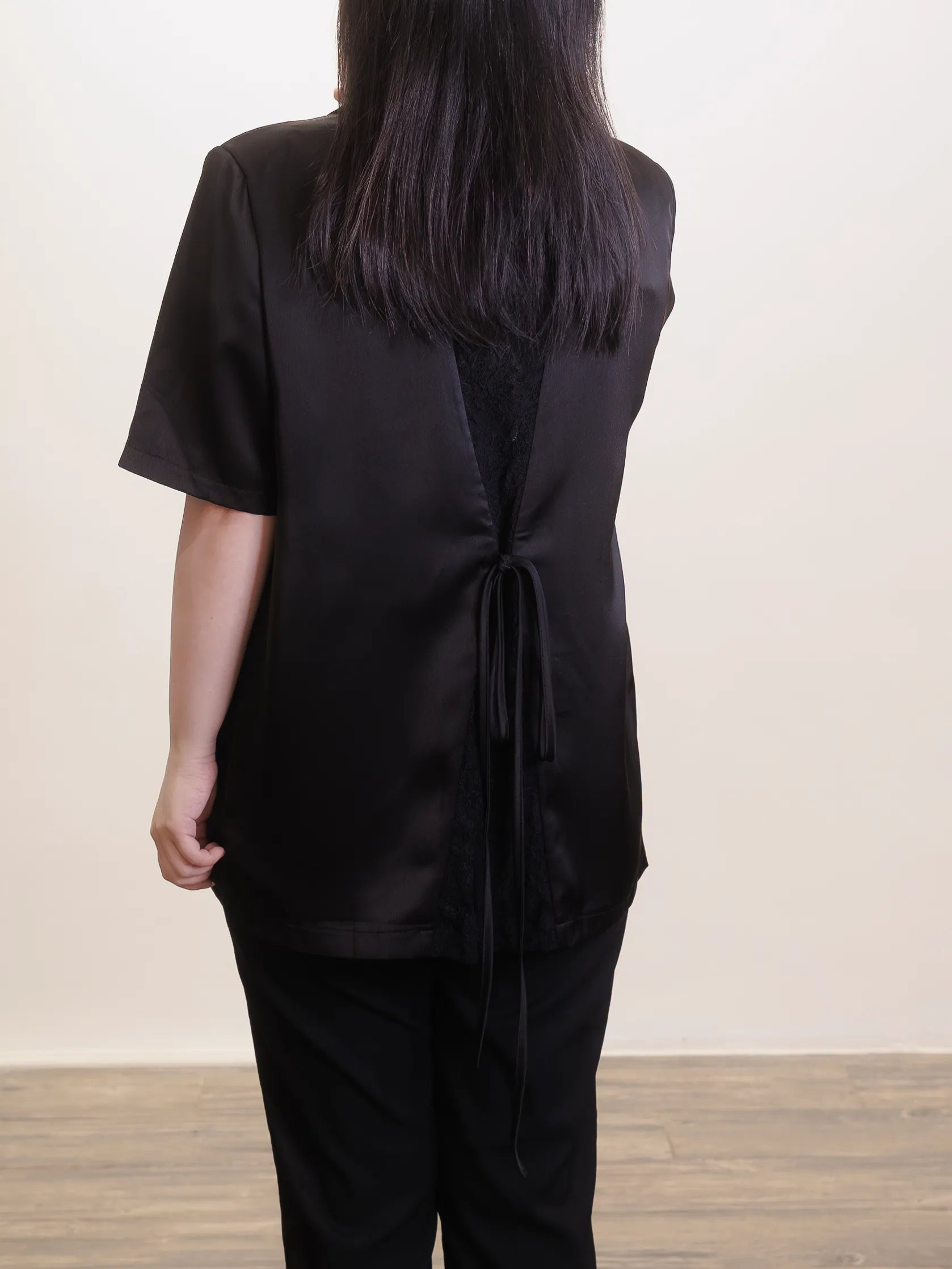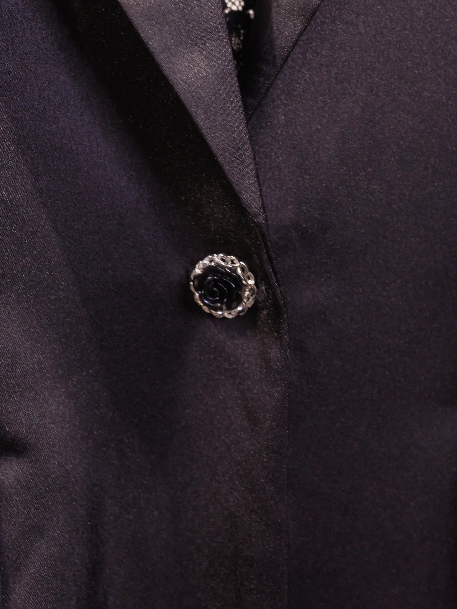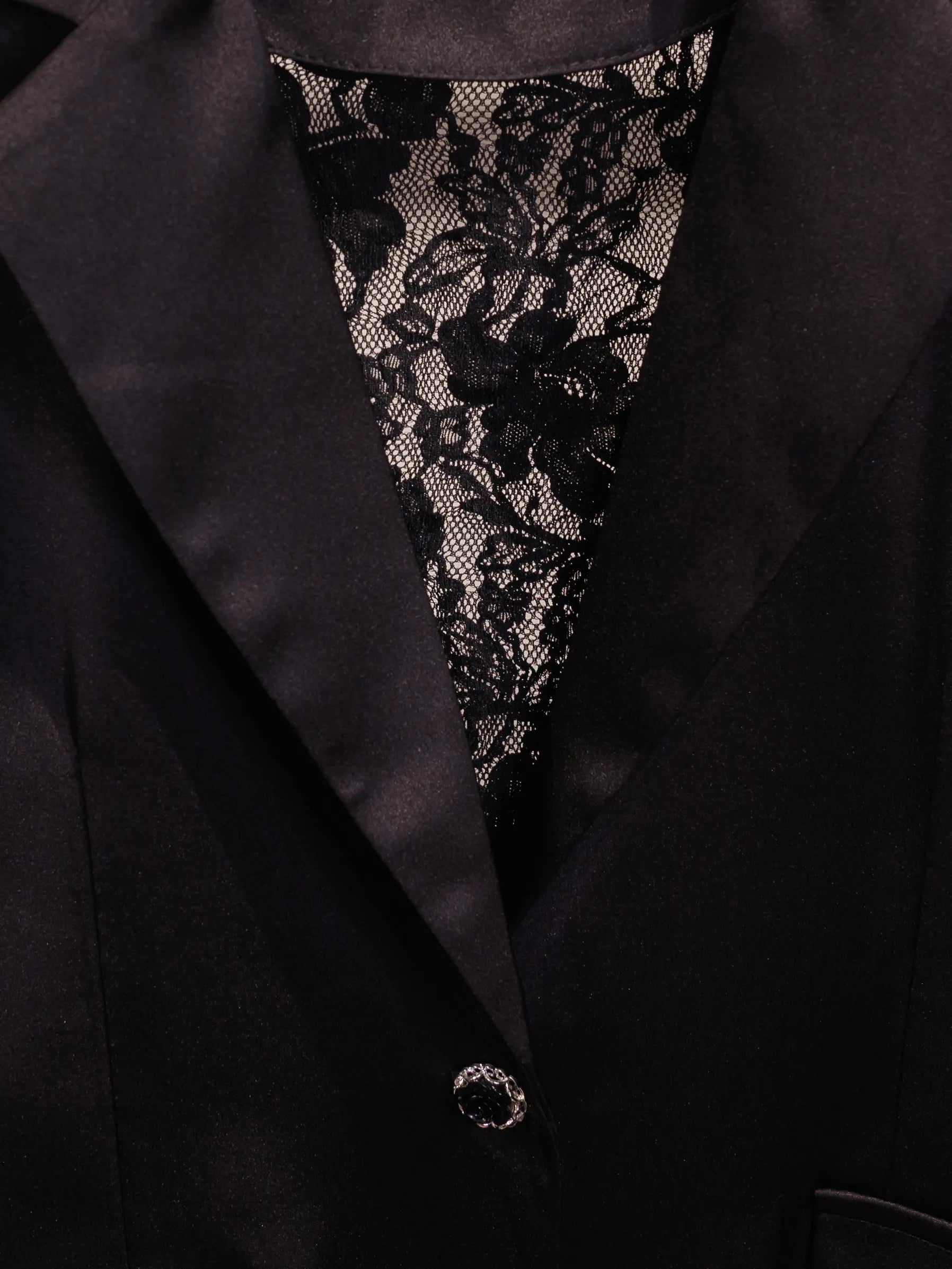 神秘的辦公室 | 鏤空背部蕾絲拼接絲滑綢緞西裝外套