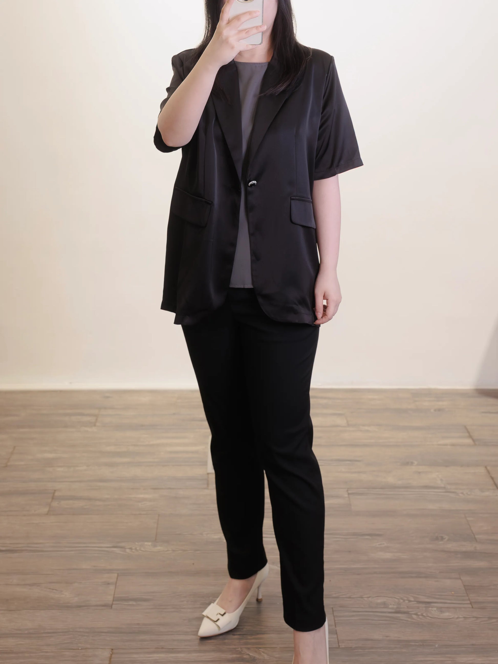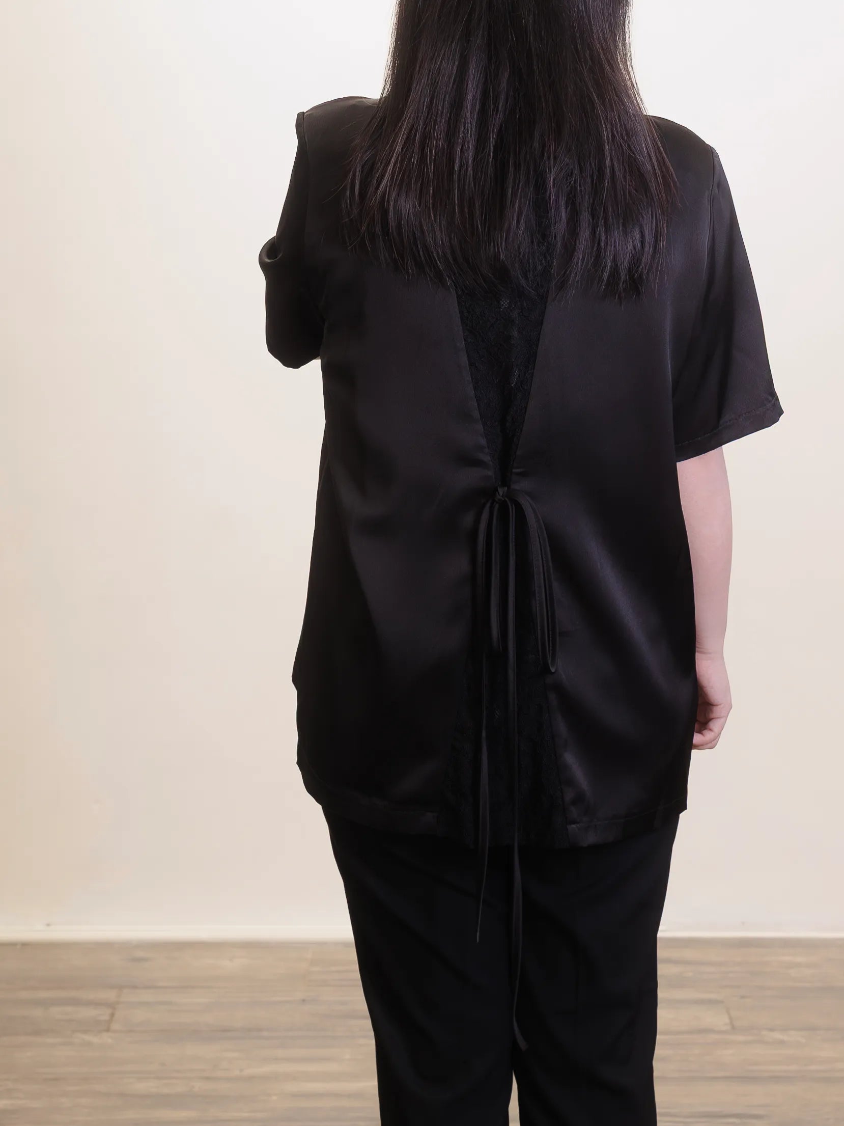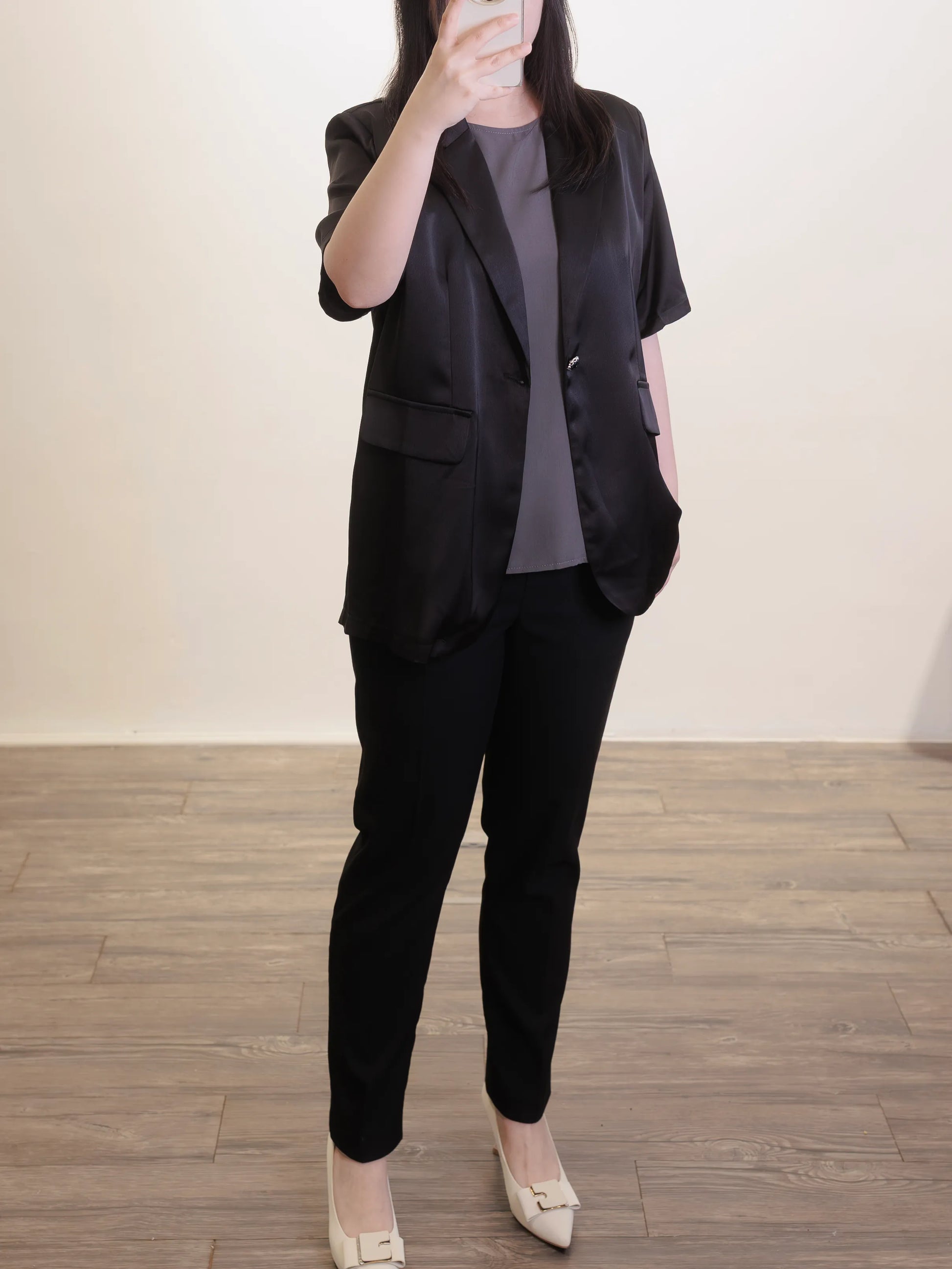 神秘的辦公室 | 鏤空背部蕾絲拼接絲滑綢緞西裝外套
