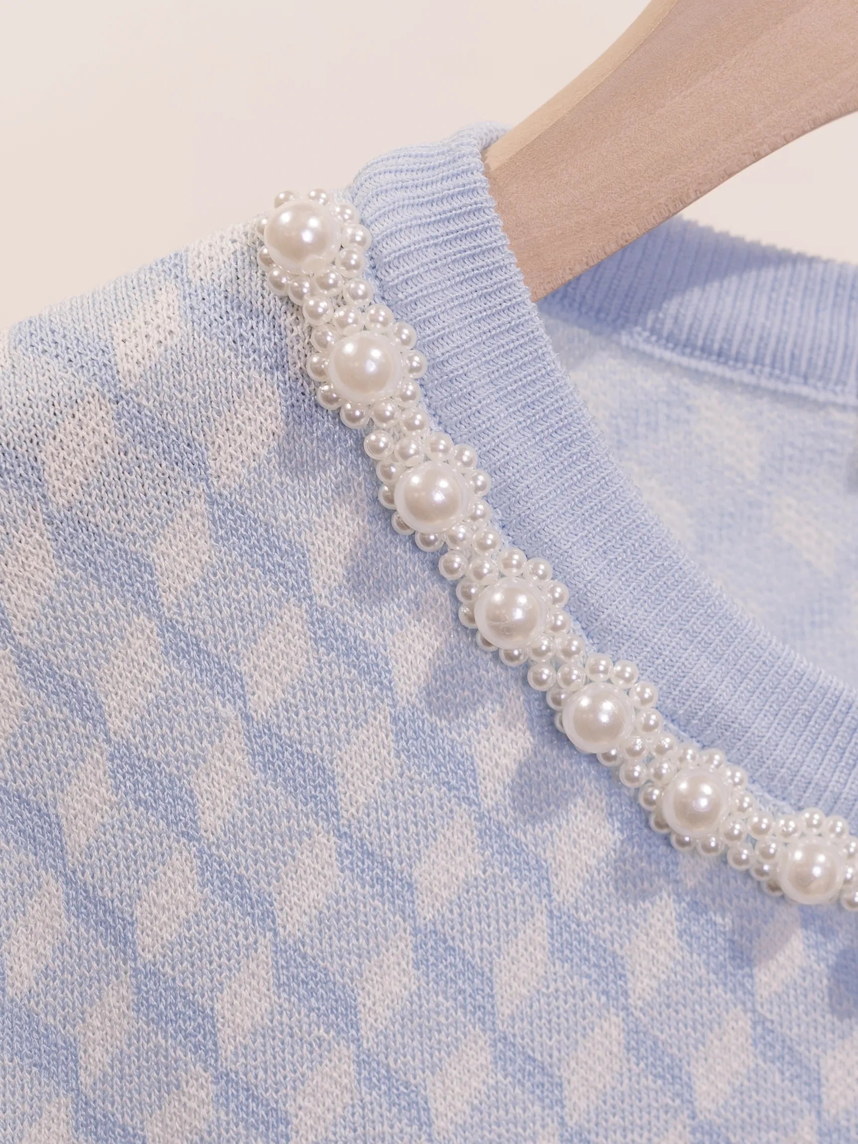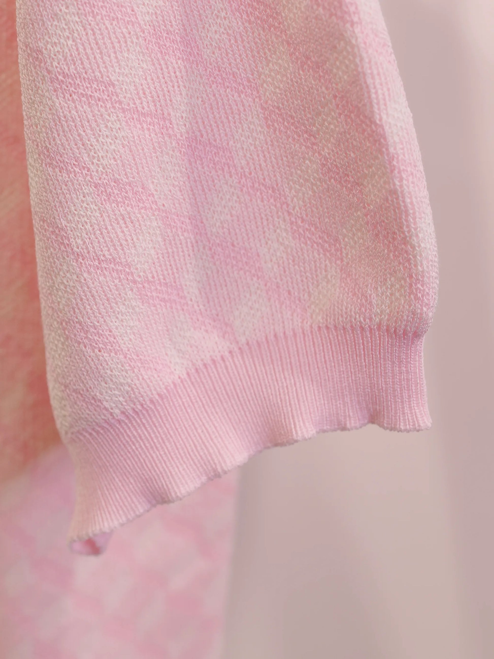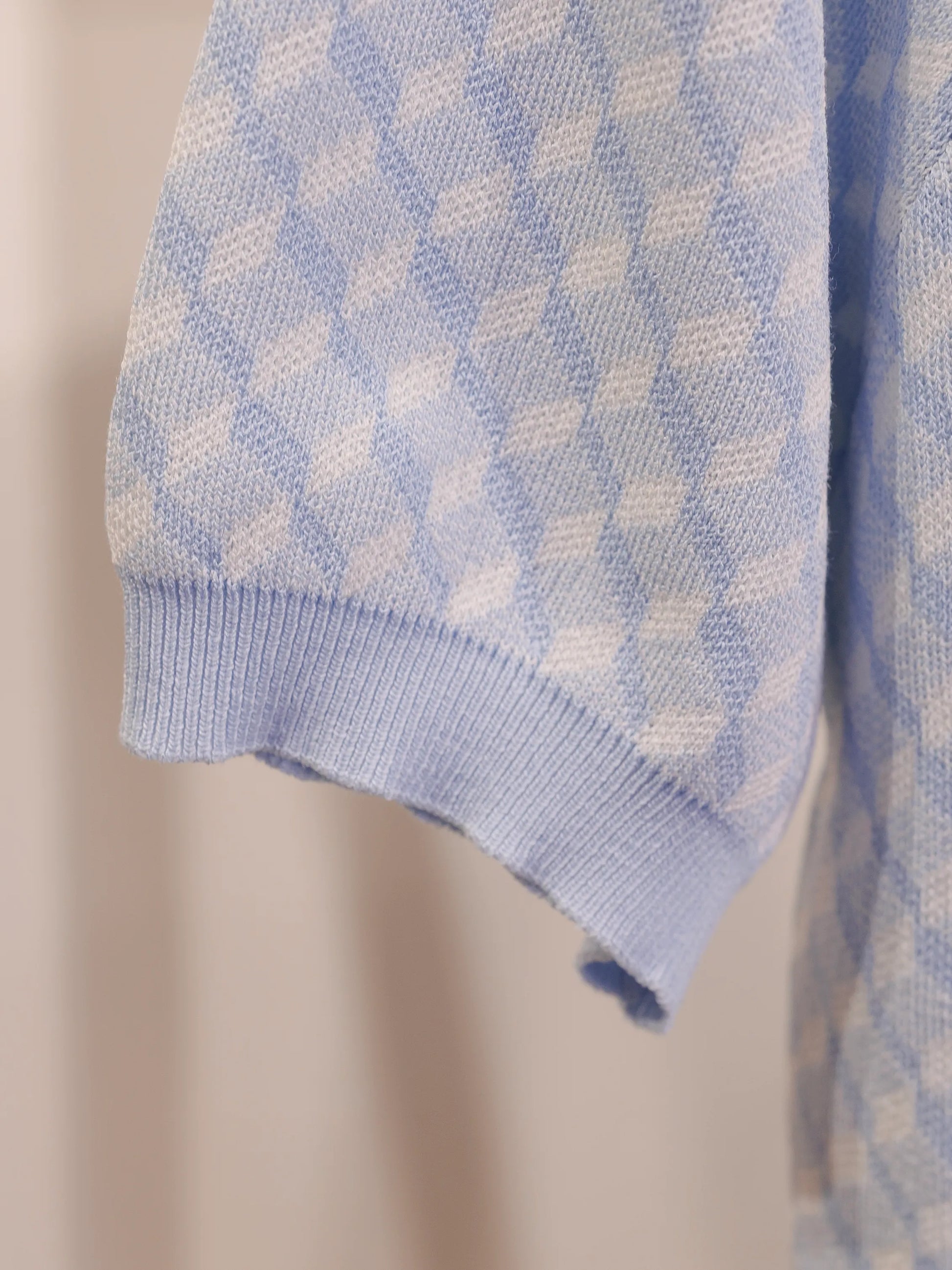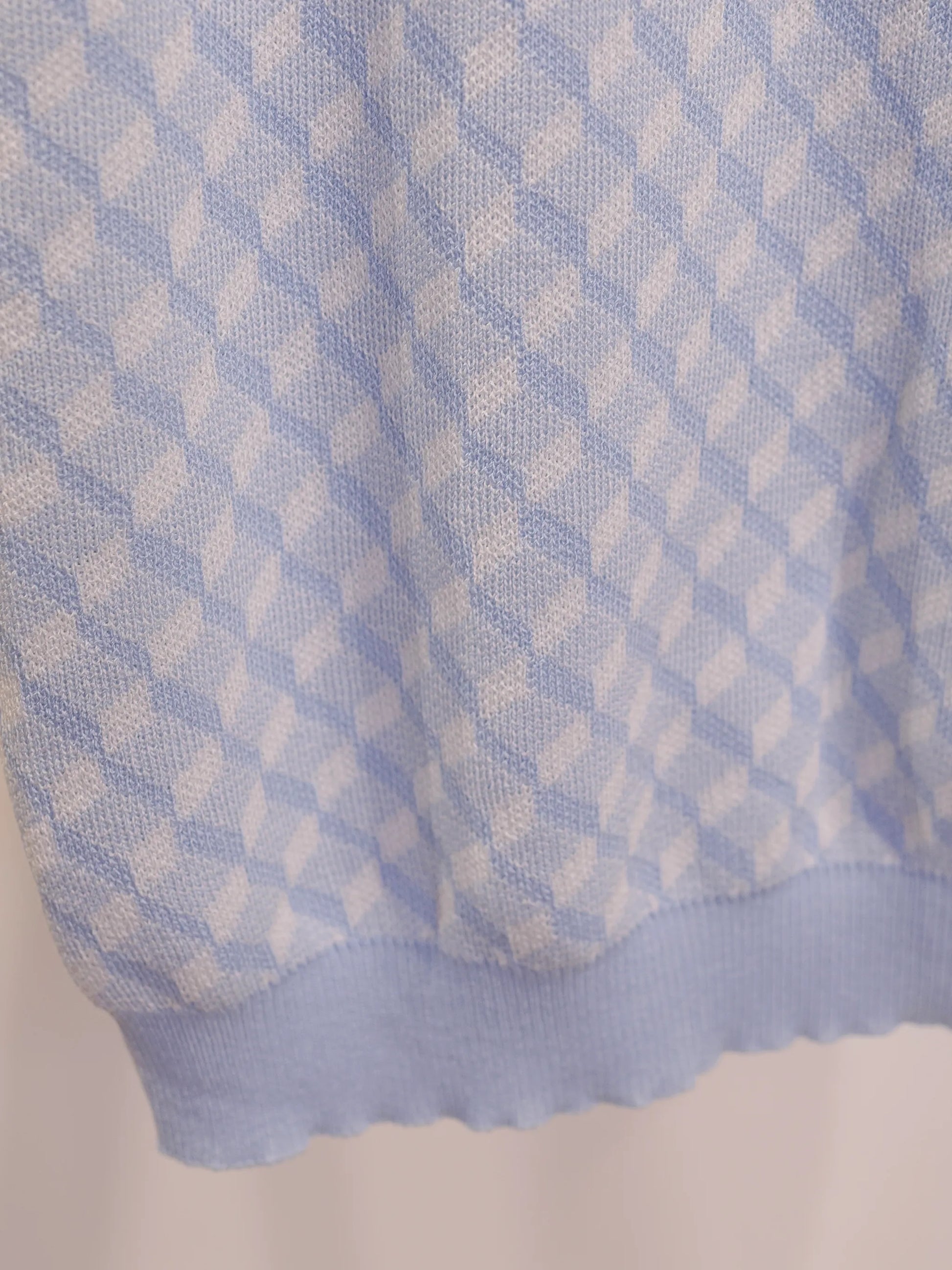恬靜的美術館 | 幾何格紋珠光領冰絲針織上衣