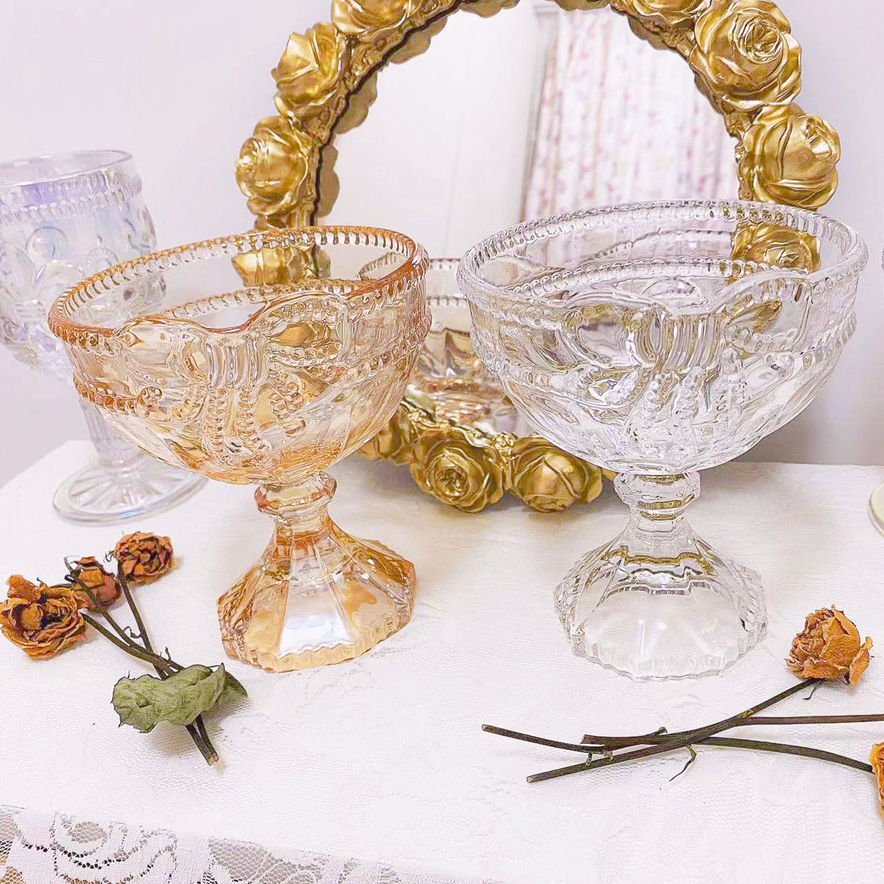 維多利亞的時光|琉璃蝴蝶結浮雕高腳杯
